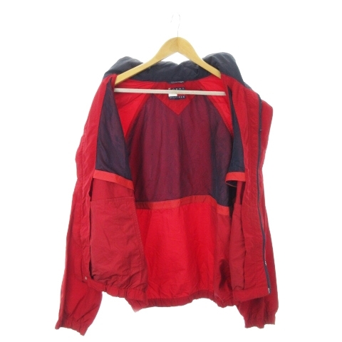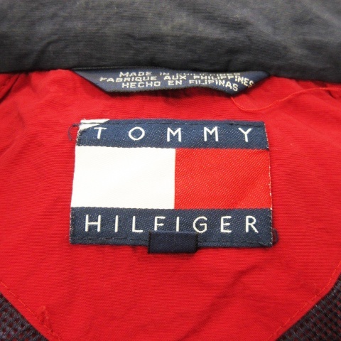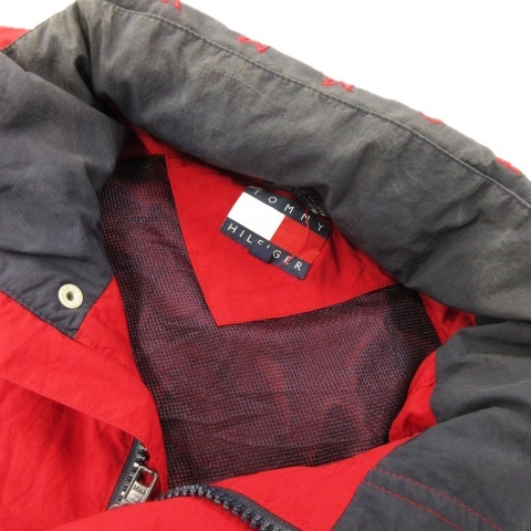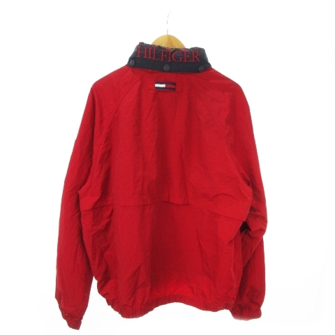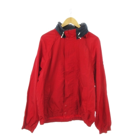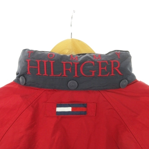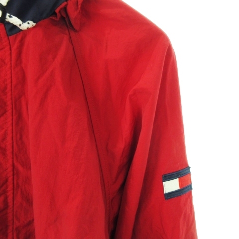 トミーヒルフィガー TOMMY HILFIGER マウンテンパーカー ナイロンジャケット ジップアップ 比翼 フード収納 ロゴ L 赤