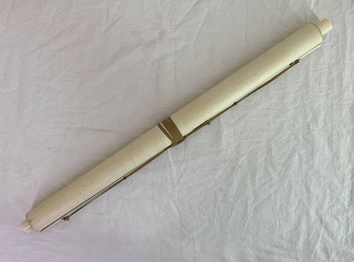 古い掛け軸は軸先を固定している接着剤が弱り、輸送途中の衝撃で軸先が外れてしまう場合がございます。