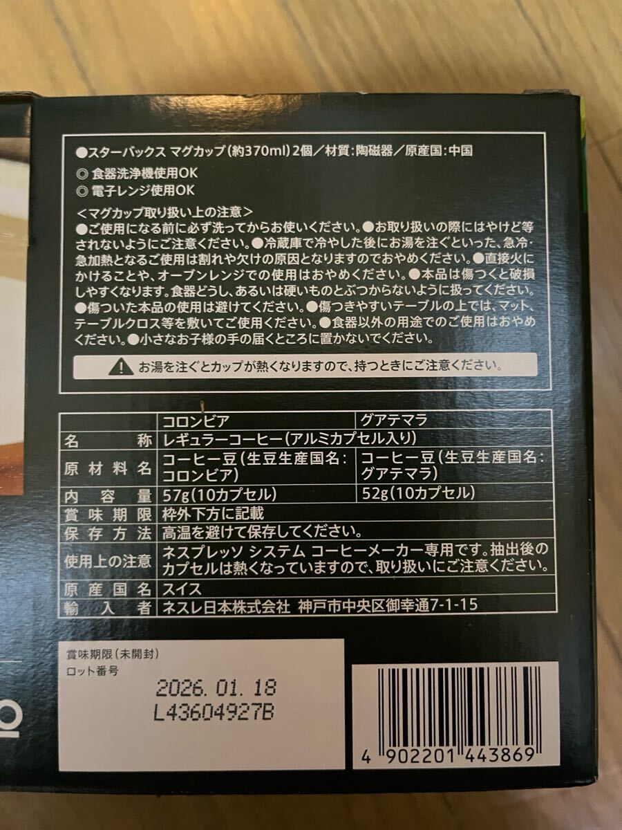 Starbucks スターバックスのマグカップ2つとネスプレッソ専用カプセル20個をセットで出品致します