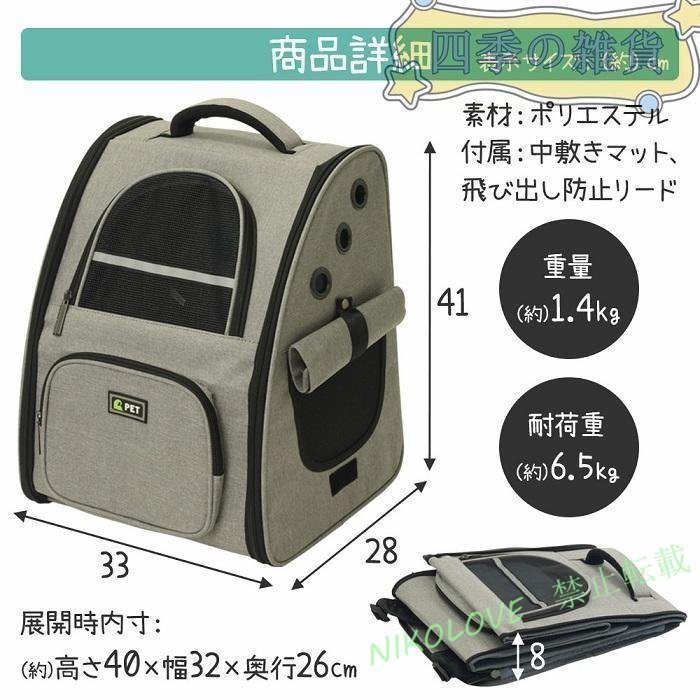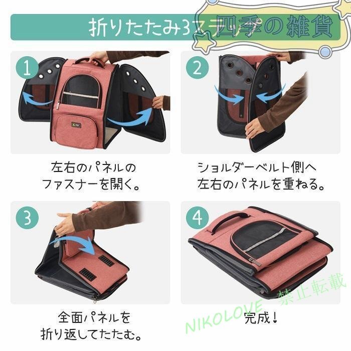 車載 キャリーリュック おりたたみ 犬 小動物 うさぎ バッグ ソフト 軽量 移動 車載 柔らかい ポータブルケージ ペットゲージ 小型犬用 中型犬用 ペットキャリーケース ソフトキャリー ソフトケージ 背負い型 リュック型 ペット ソフト 折畳み 屋根付き メッシュ キャリーバッグ ペット用 軽量 防