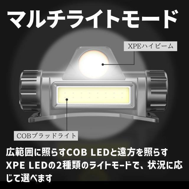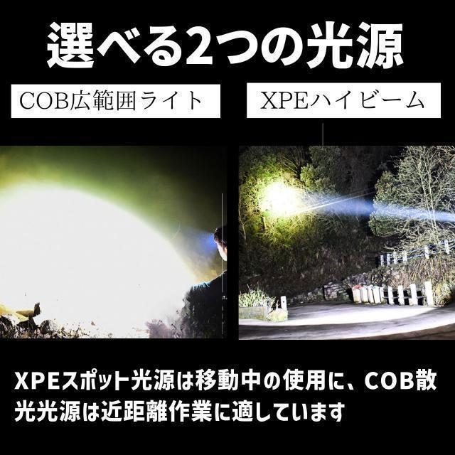 広範囲に照らすCOB LEDと遠方を照らすXPE LEDの2種類のライトモードで、状況に応じて選べます。