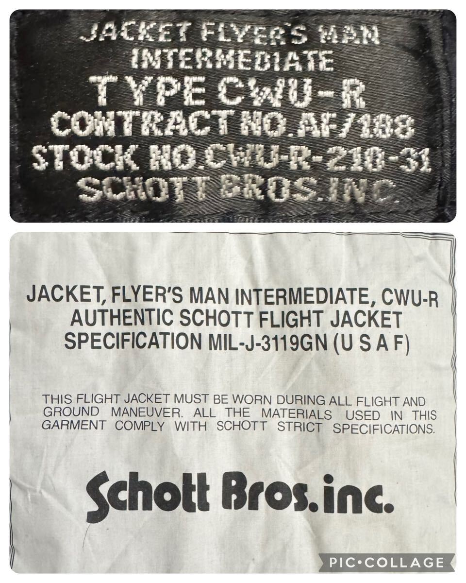 稀少 Schott 90sヴィンテージ CWU-R フライトジャケット 短丈 ビッグサイズ XXL 民間品 復刻