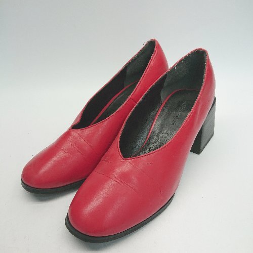 ◇ MOUSSY マウジー Vカット ハイヒール スクエアトゥ オシャレ シンプル パンプス サイズS レッド系 レディース E