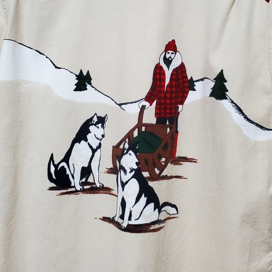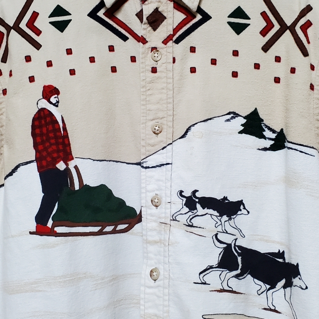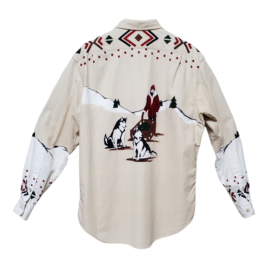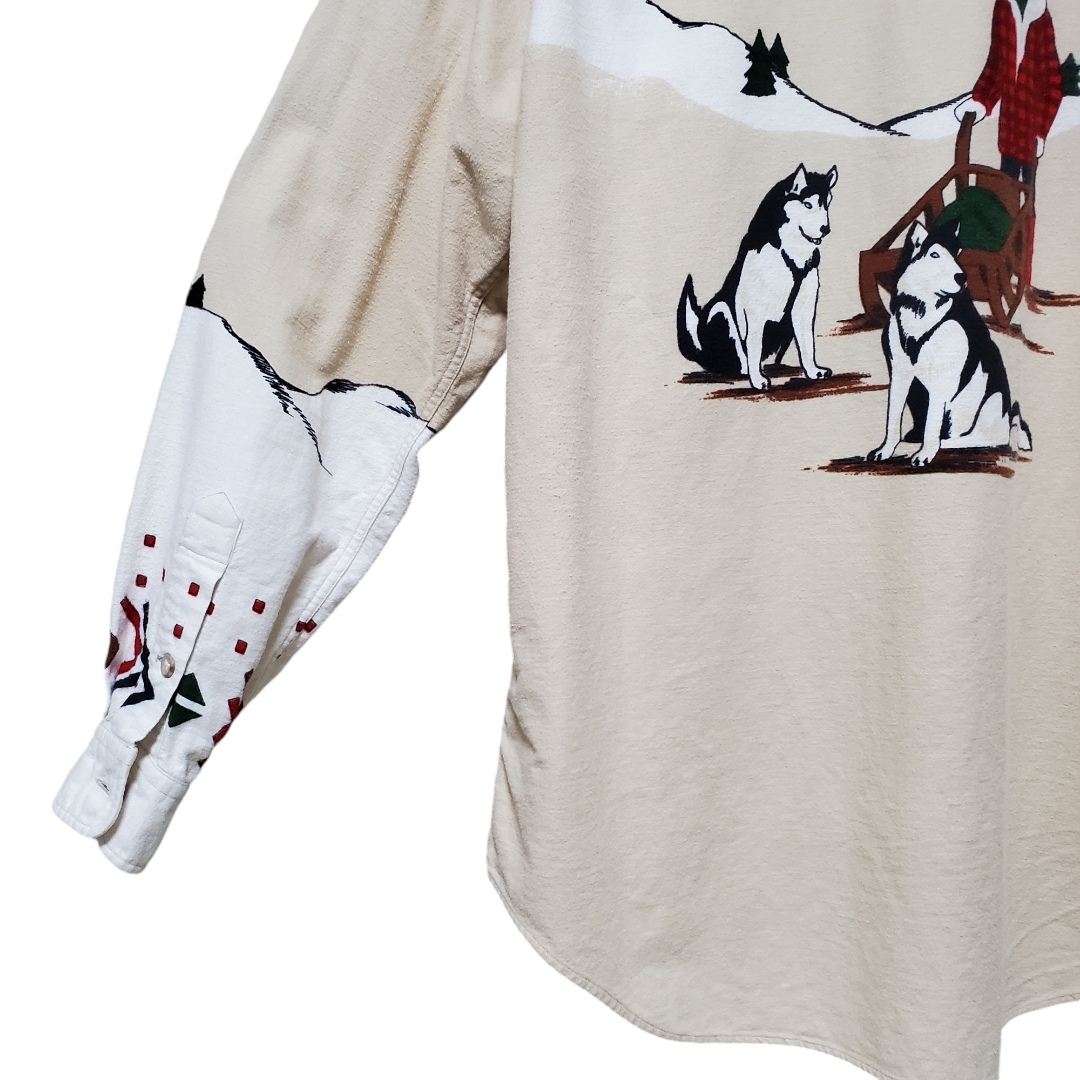 【USA製 入手困難 クリーニング済】 RALPH LAUREN ポロ ラルフローレン 総柄 長袖シャツ シャモアクロス フランネルシャツ エスキモー 犬柄