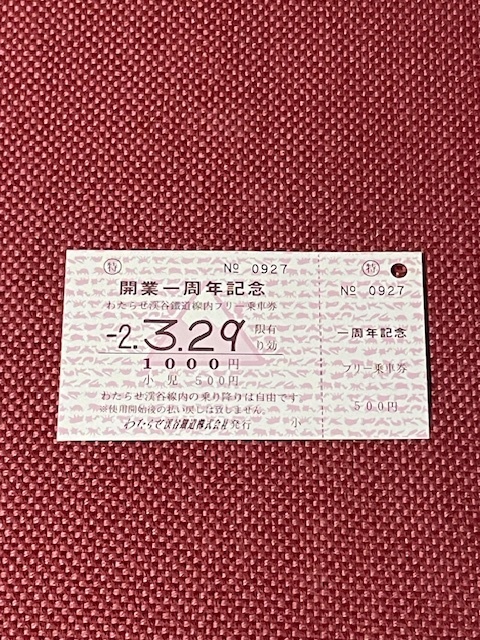 わたらせ渓谷鉄道 開業一周年記念フリー乗車券 (管理番号98-31)