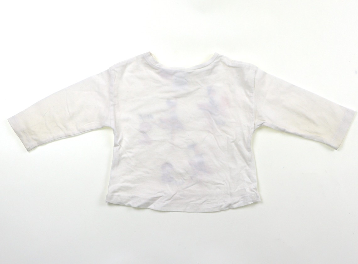 実際のサイズ表記は74cmです。カットソー地です。首元と袖に汚れあり。薄汚れとかなり洗いざらし感あり。洗い替え用にいかがでしょうか。
