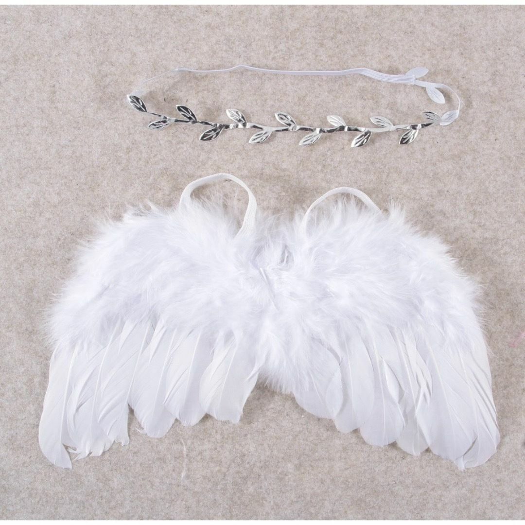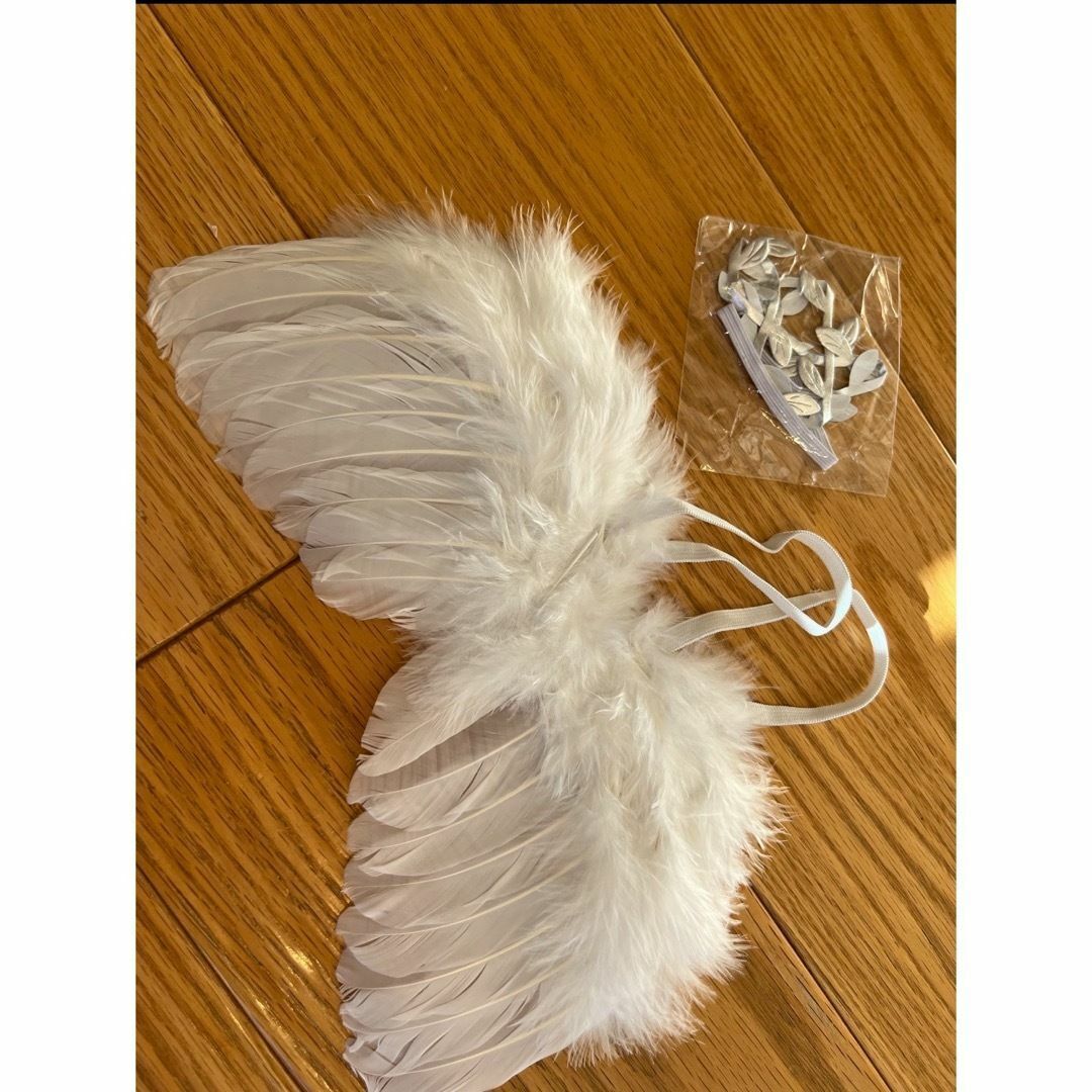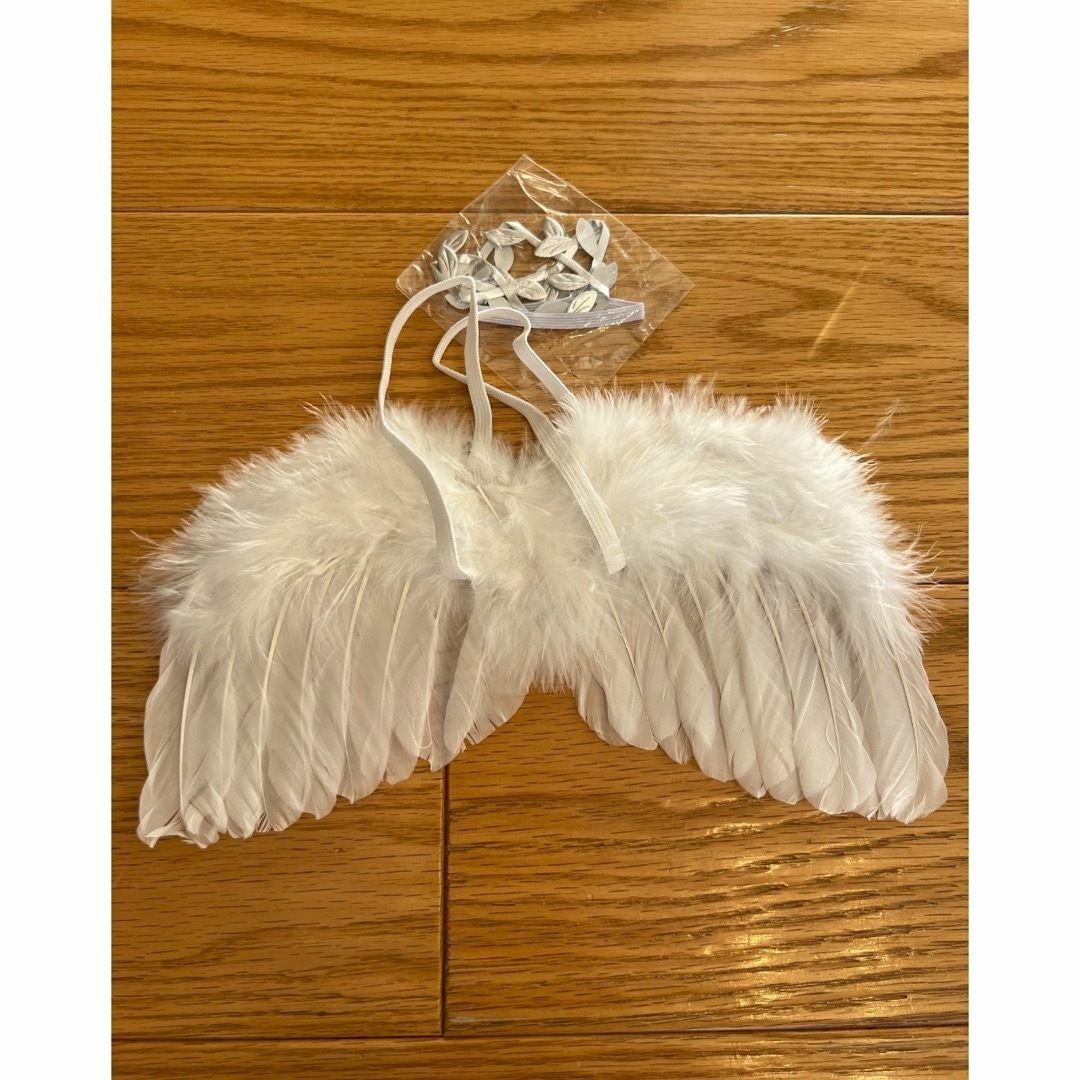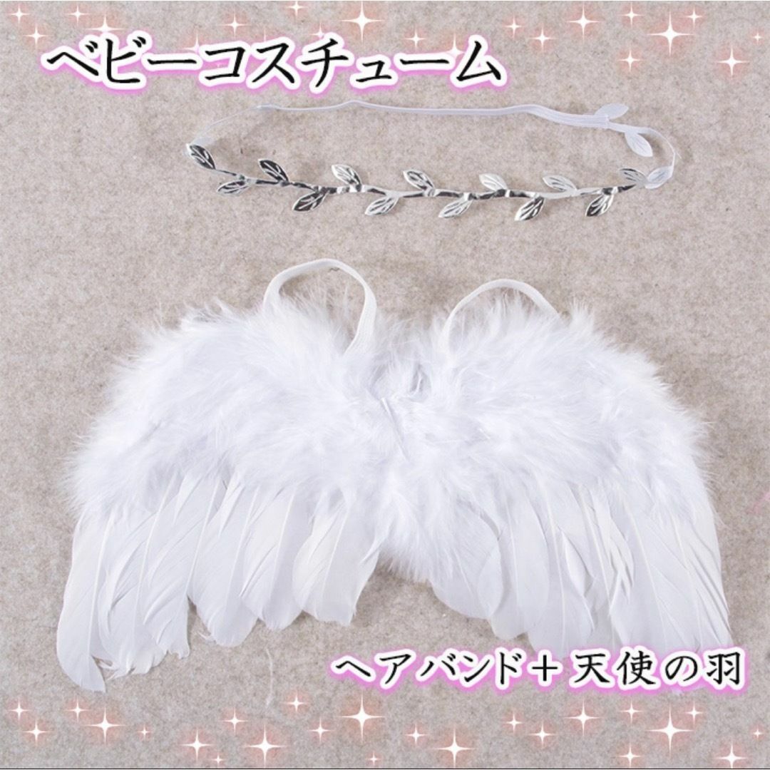 ニューボーンフォトのコスチューム、天使の羽根とシルバーのリーフのヘアバンド2点セットです!
