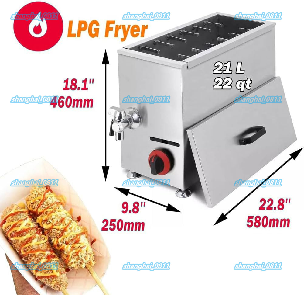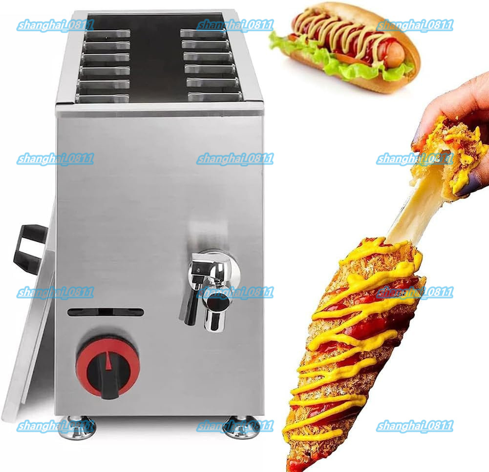 業務用ガスディープフライヤー、21Lチーズホットドッグスティックマシン、12個ソーセージフライ装置、温度調節可能、ホットドッグ用