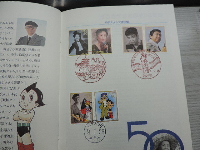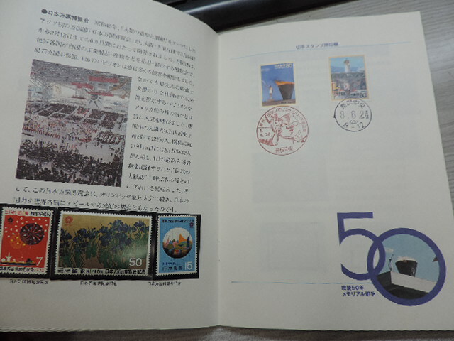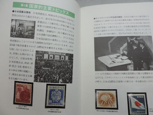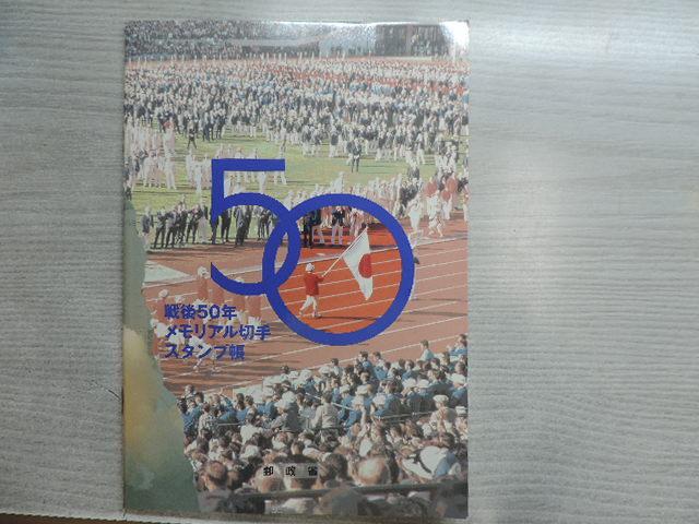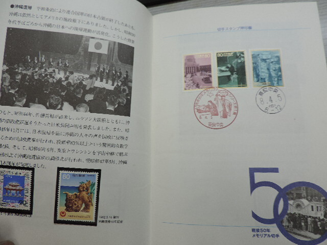 ★戦後50年メモリアル切手スタンプ帳★ 1947年日本国憲法施行記念~戦後50年 1929円分 奈良中央消印付あり