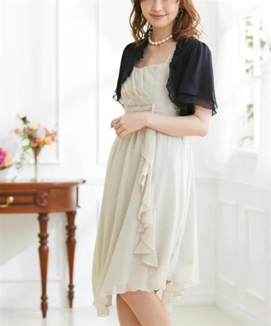 新品☆15号L長め丈裾シフォンパーティーワンピース♪ボレロ付き〇G448
