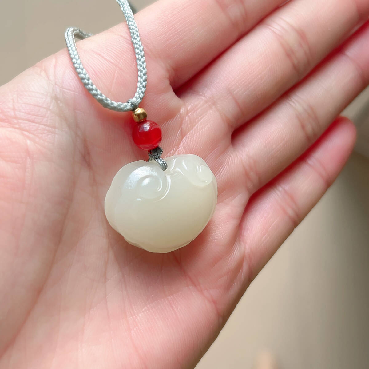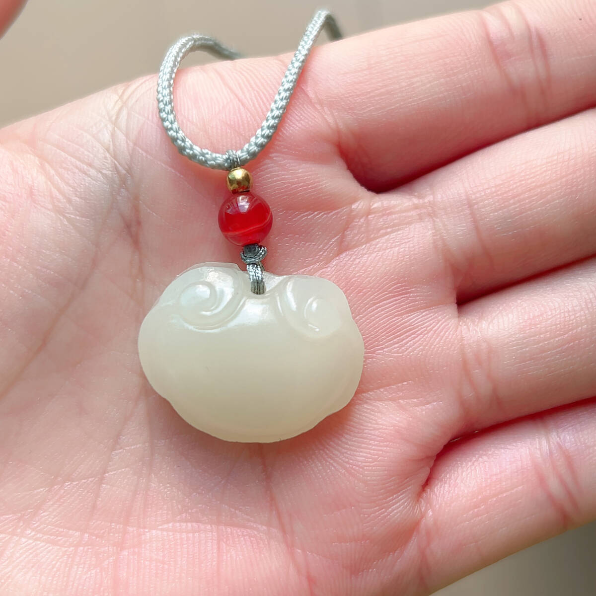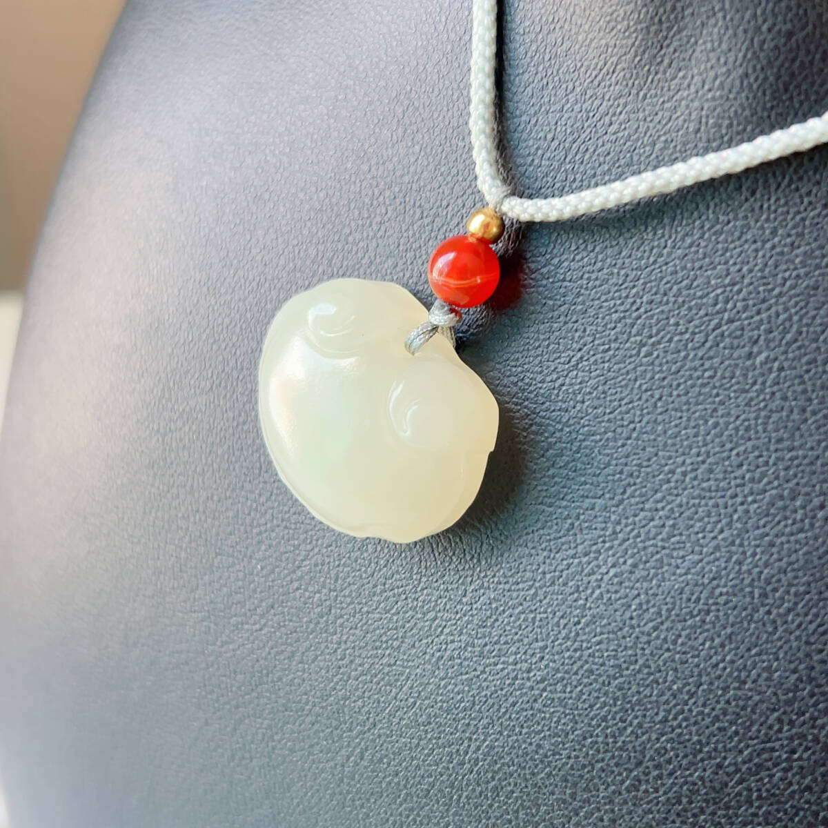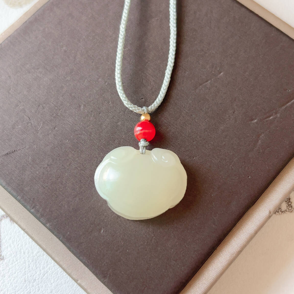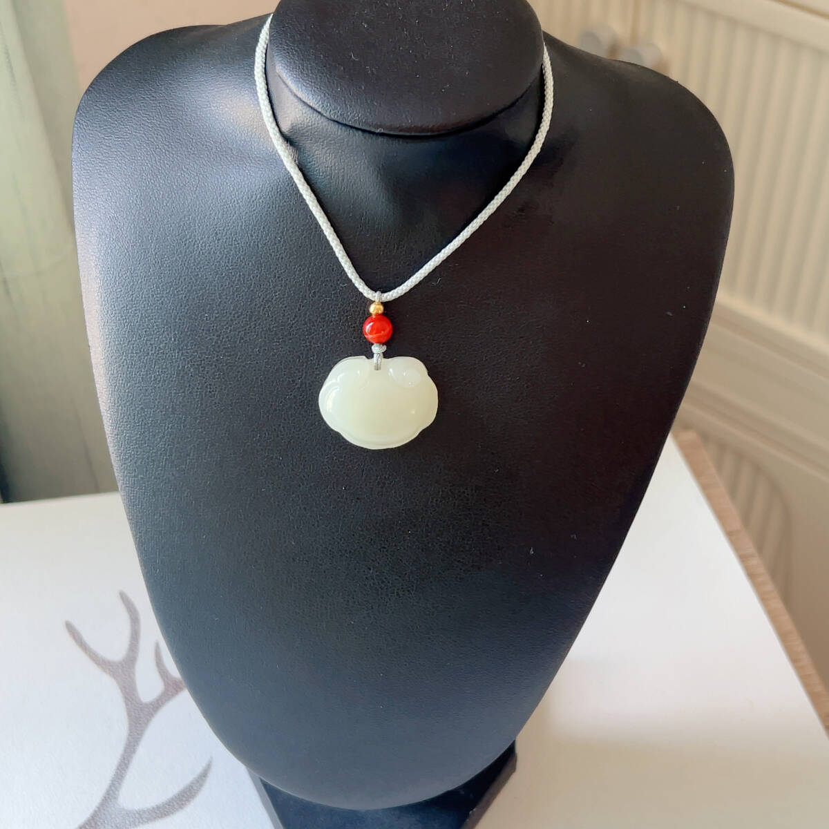 ◇アフガニスタン産◇翡翠・ヒスイ◇天然石◇ネックレス◇ペンダント◇如意鎖形◇巾着袋付き◇プレゼントにも 036P392
