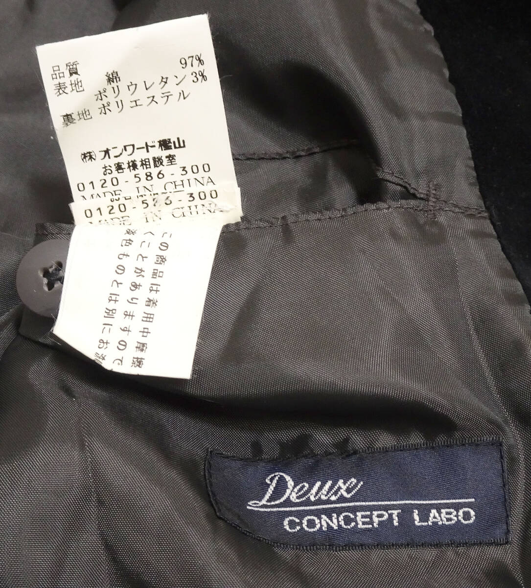 新品/Deux CONCEPT LABO(ドゥ コンセプト ラボ)/コットン/ストレッチ/ベロア/テーラード/ブレザージャケット/M