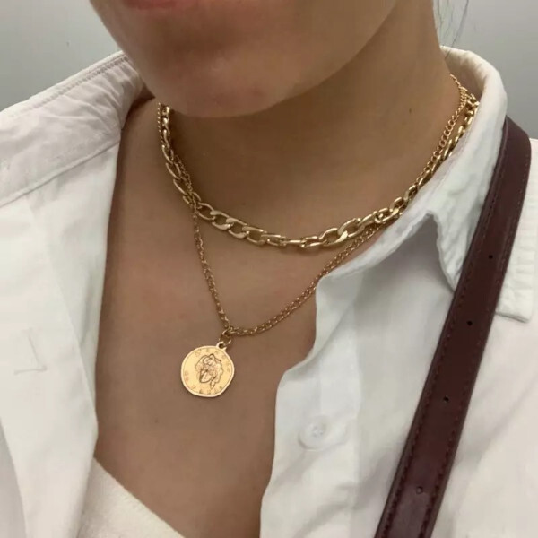 ダブルチェーンのコインネックレス。