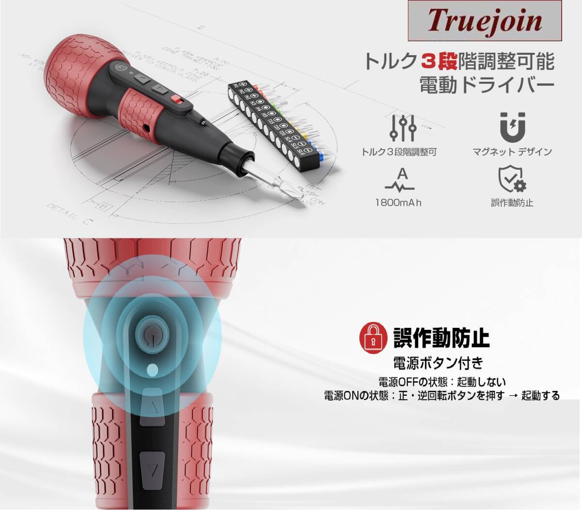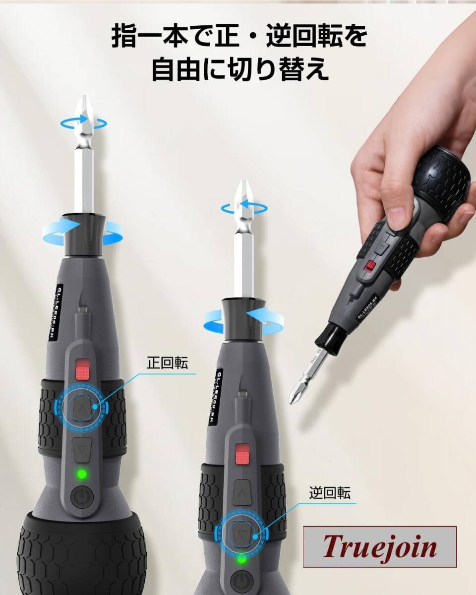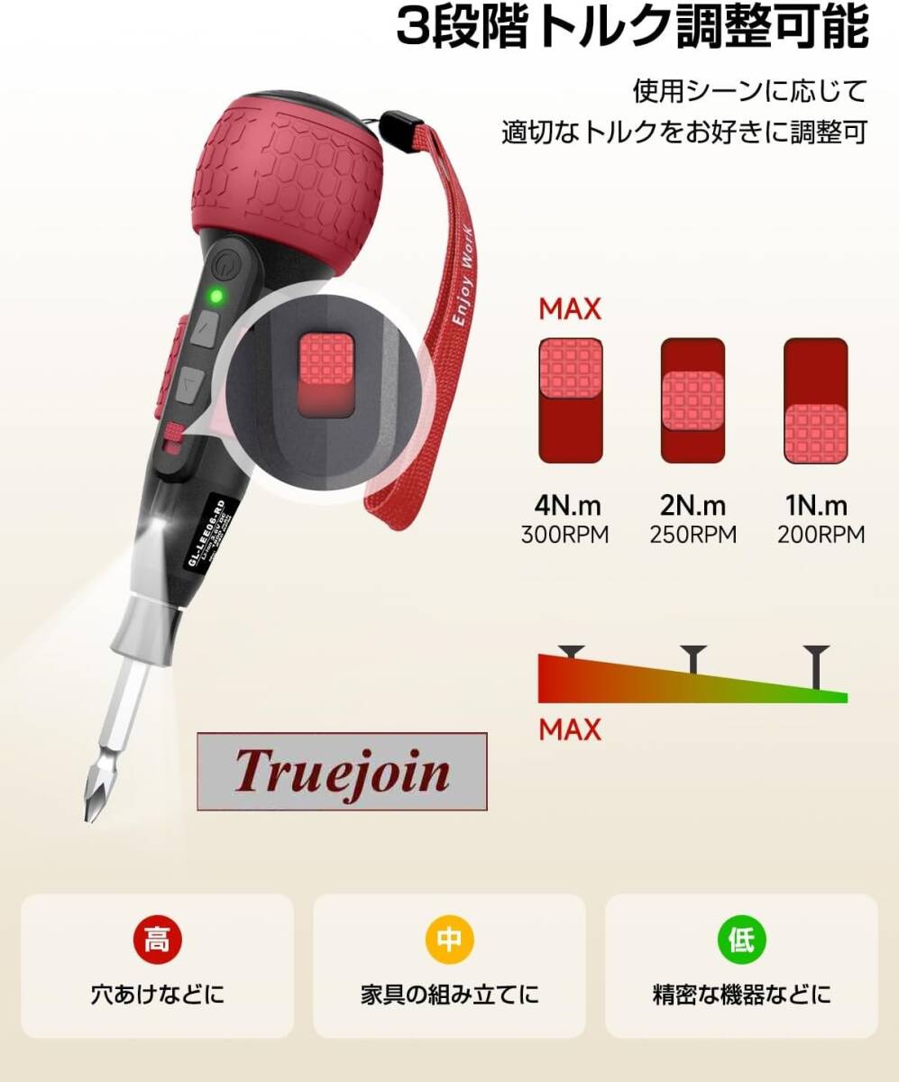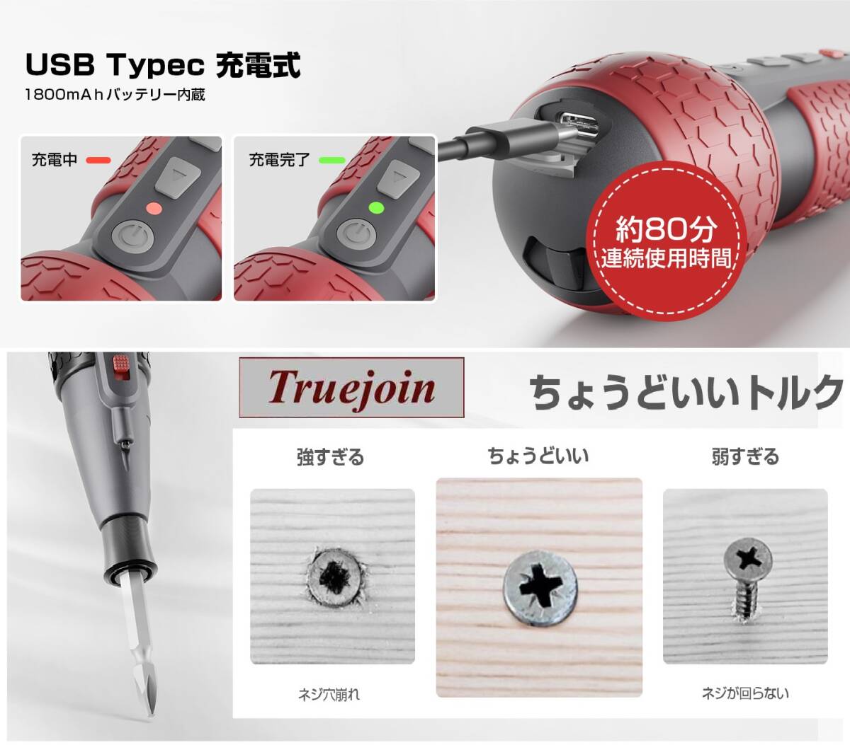 電動ドライバー 小型 強力 トルク3段階調節 高い同心度 ビット振れ軽減 電動4N.m 手動12N.m USB-C充電式 高輝度LEDライト 軽量 DIY