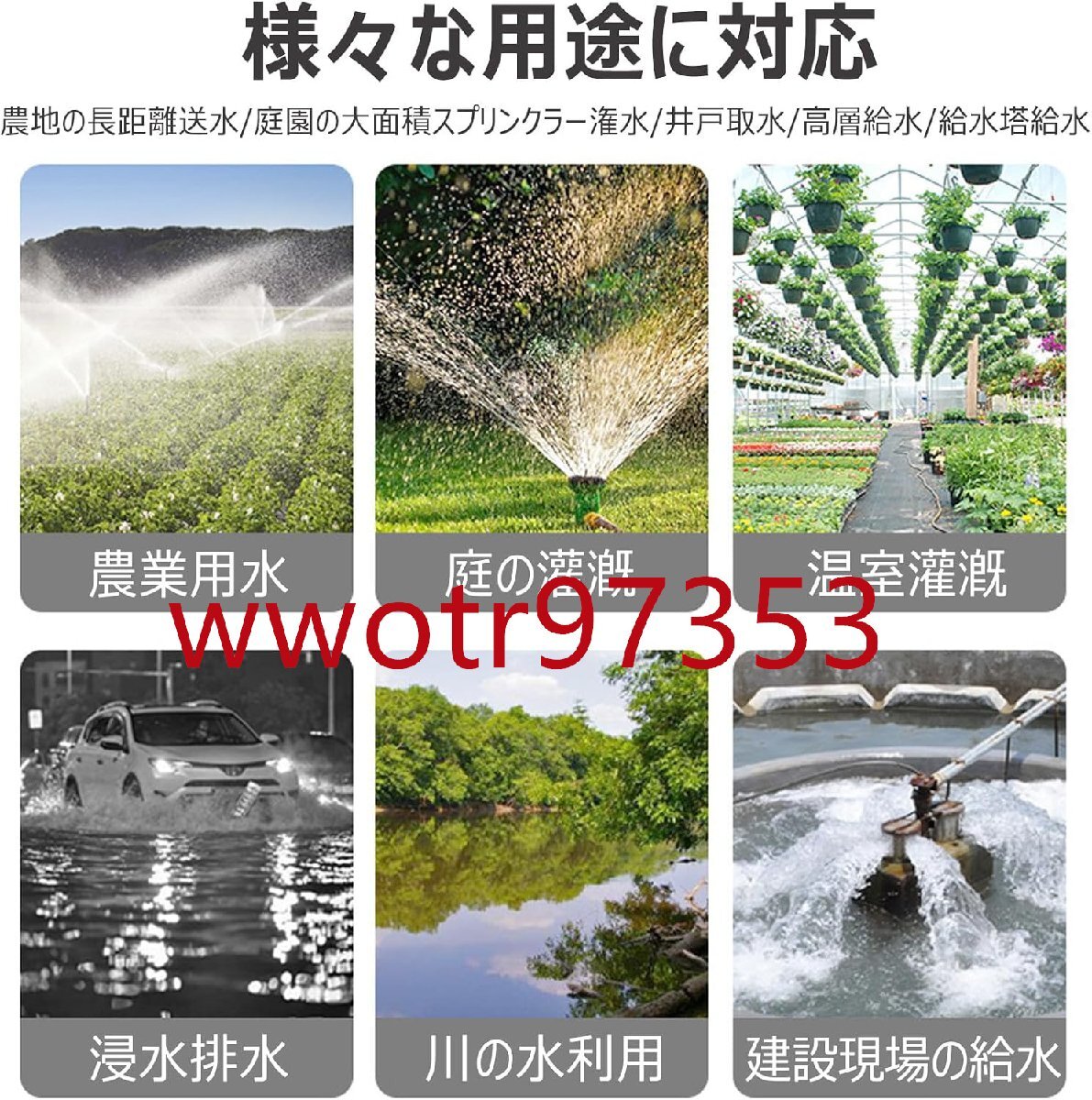 農地での長距離送水、庭園での広範囲の散水灌漑、消火用水、養魚池の飼育、プールの水換え、深井戸水の採取など、さまざまなシーンで幅広く活用できます。