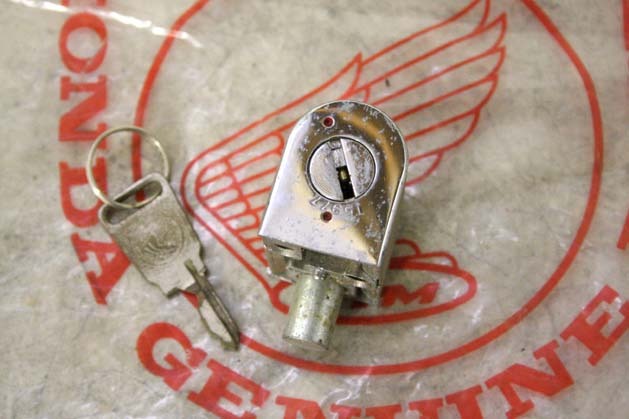 60sホンダ純正、当時のオリジナルのままの、ハンドルロックです。