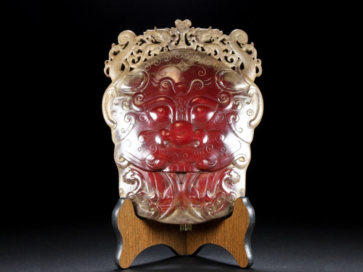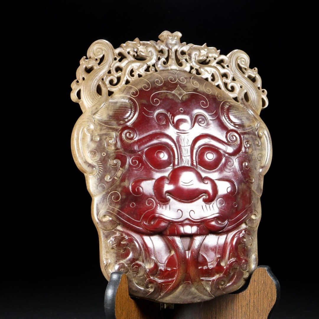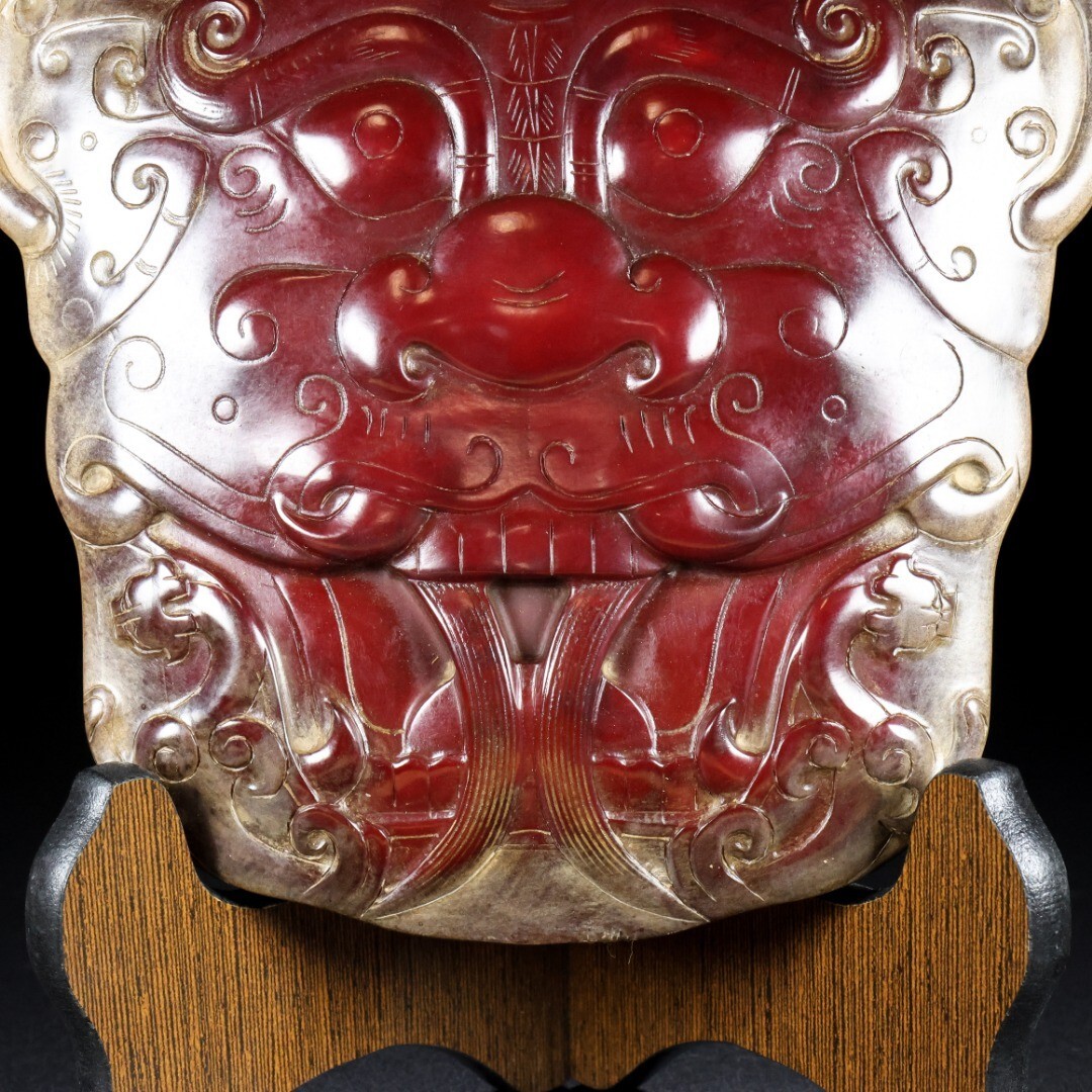 【瓏】和田玉 高古玉彫 人面擺件 時代物 極細工 手彫り 置物擺件 中国古賞物 古美術 蔵出