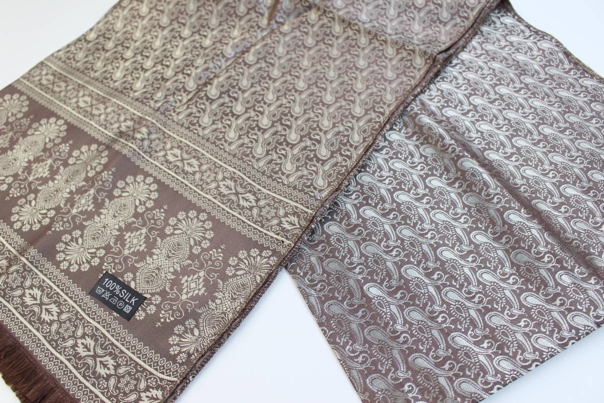 ♪ご覧いただきありがとうございます。迅速、丁寧な対応を心掛けさせていただきますのでよろしくお願い致します♪ ★商品について ☆シルク100%を使用した滑らかで柔らかく、ツルツルとした上品な肌触りがやみつきになるストール/スカーフです☆ ☆色鮮やかなペイズリー柄が魅力的で、ツヤ、高級感があり、ユニセックス対応でオールシーズン着用する事が出来ます☆ ☆コーディネートのアクセントに是非一度お試しくださいませ☆ ★色-ブラウン系(色名は主観によるものになりますのでご理解のほどよろしくお願い致します) ご使用のモニター等により色合いが異なって見える場合がございますので予めご了承くださいませ。 ★実寸-長さ約175cm 幅約70cm 素人採寸になりますので、多少の誤差はお許しください。 ★素材-シルク100% ★状態-新品 ★支払詳細 ■Yahooかんたん決済 ★発送詳細 同梱をご希望の方は必ず『まとめて取引』を利用してください。まとめて取引の申請期限は初回ご落札より72時間内のものが対象となります。 ■クリックポスト 全国一律185円...基本的には2枚まで発送可になります(シルク製品等の薄手の商品は厚み次第で3~5枚まで同梱可になりますので、まとめて取引もしくは取引ナビにてご相談くださいませ。) ★注意事項 ご落札後はノークレームノーリターンでお願いします。 実際の色味に極力近付けるよう努力させていただいておりますが、モニターで見えるお色と実際のお色の印象が違う場合や、お色の感じ方に個人差がある場合がございますのでご理解のほどよろしくお願い致します。 新品、未使用品になりますが、繊細な素材である為、製品上の糸引きや織傷、色、織りむら等がある場合がございますので予めご了承くださいませ。タグは周りの生地が傷む場合がございますので剥がさずにご使用いただく事をお勧め致します。 上記理由での返品、交換はお受け致しかねますので、ご理解いただいた上でご入札お願いします。 新規の方や、非常に悪いの評価が多い方は入札を取り消しさせていただく場合がございます。また、神経質な方やマナーの悪い方は当方の判断で削除させていただく場合もございますので予めご了承くださいませ。 お取り置き、お支払いは初回ご落札から5日までとさせていただきます。期限を越えられた方は落札者様都合により削除と入札制限の措置を取らせていただきますのでよろしくお願い致します。 以上の点をご了承いただいた上でご入札お願いします。 | |||