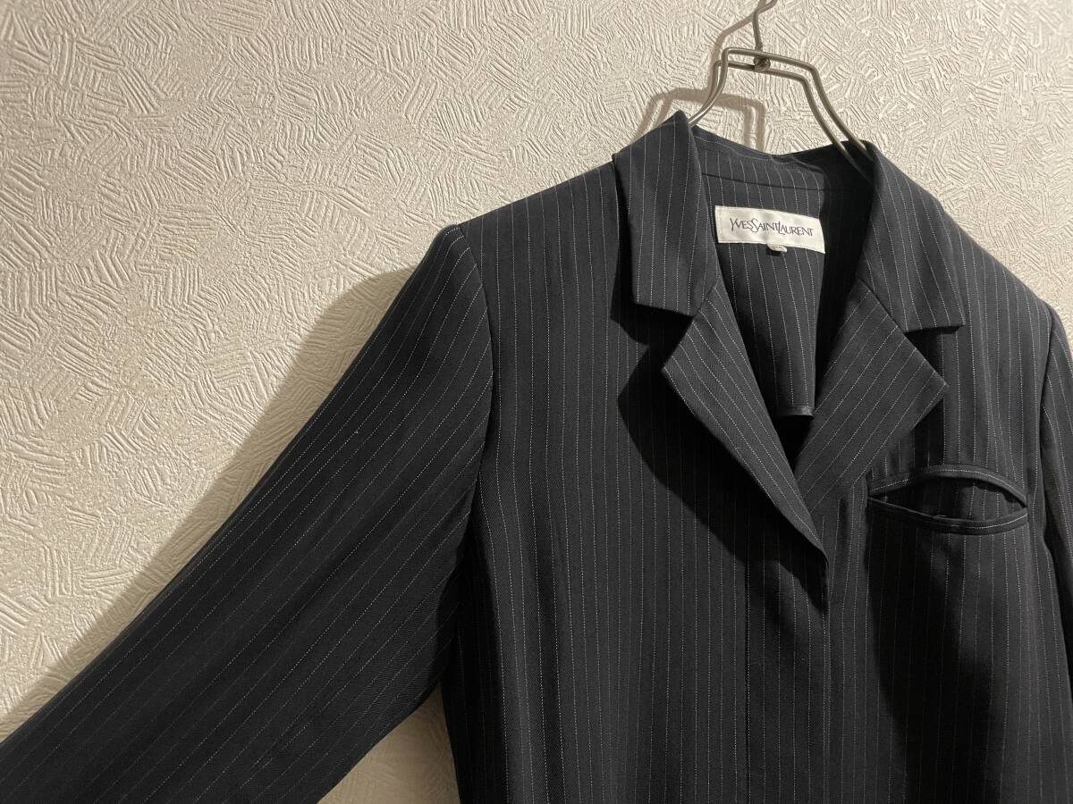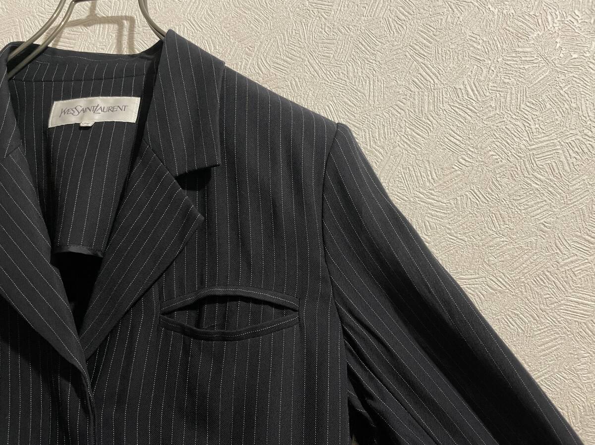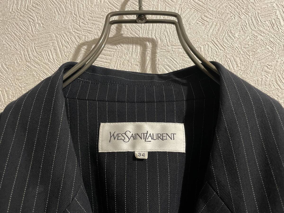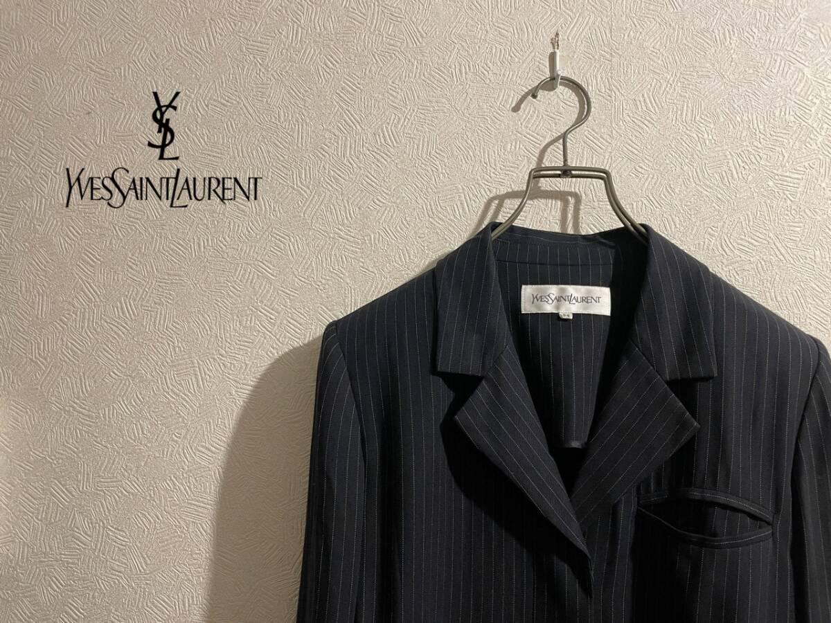 ◯ Yves Saint Laurent ピン ストライプ テーラード ジャケット / イヴサンローラン ボタンフライ 比翼 ネイビー 紺 34 Ladies #Sirchive