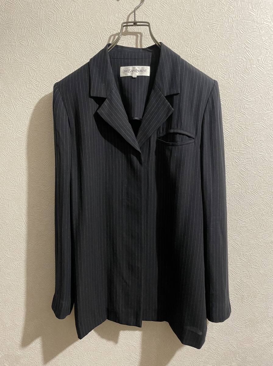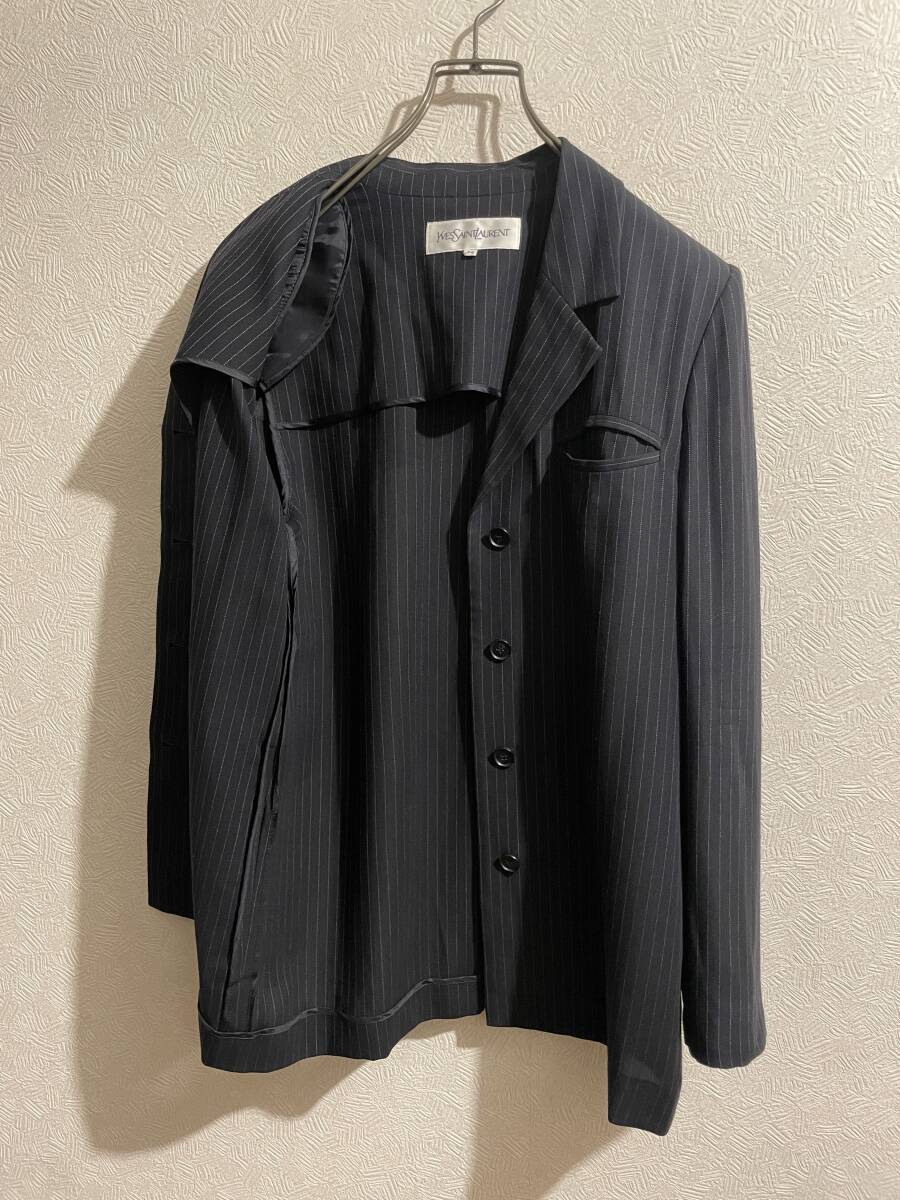 ◯ Yves Saint Laurent ピン ストライプ テーラード ジャケット / イヴサンローラン ボタンフライ 比翼 仕立て J31
