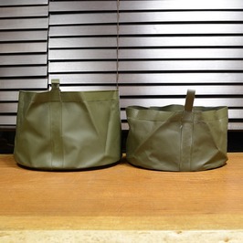 防水仕様のPVC素材で作られており、小サイズは約4L、大サイズは約7Lの水を貯めることができます。