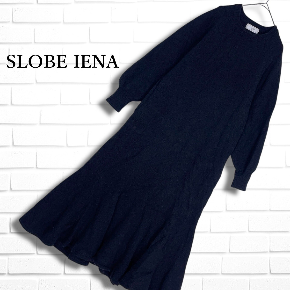 ◆良品◆ SLOBE IENA スローブ イエナ ゆったり♪ ウール 長袖 ニット ロング ワンピース 黒 ブラック レディース 38 M ◆送料無料◆ 2515C◇