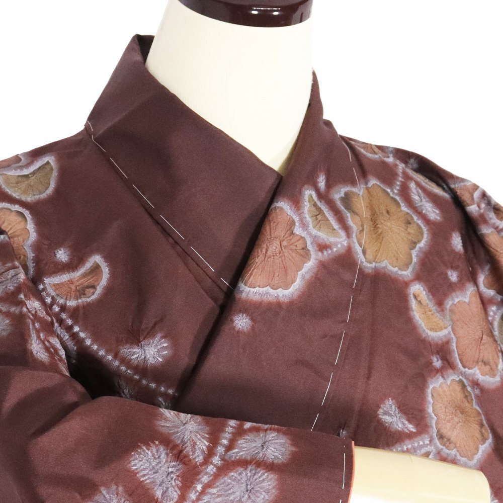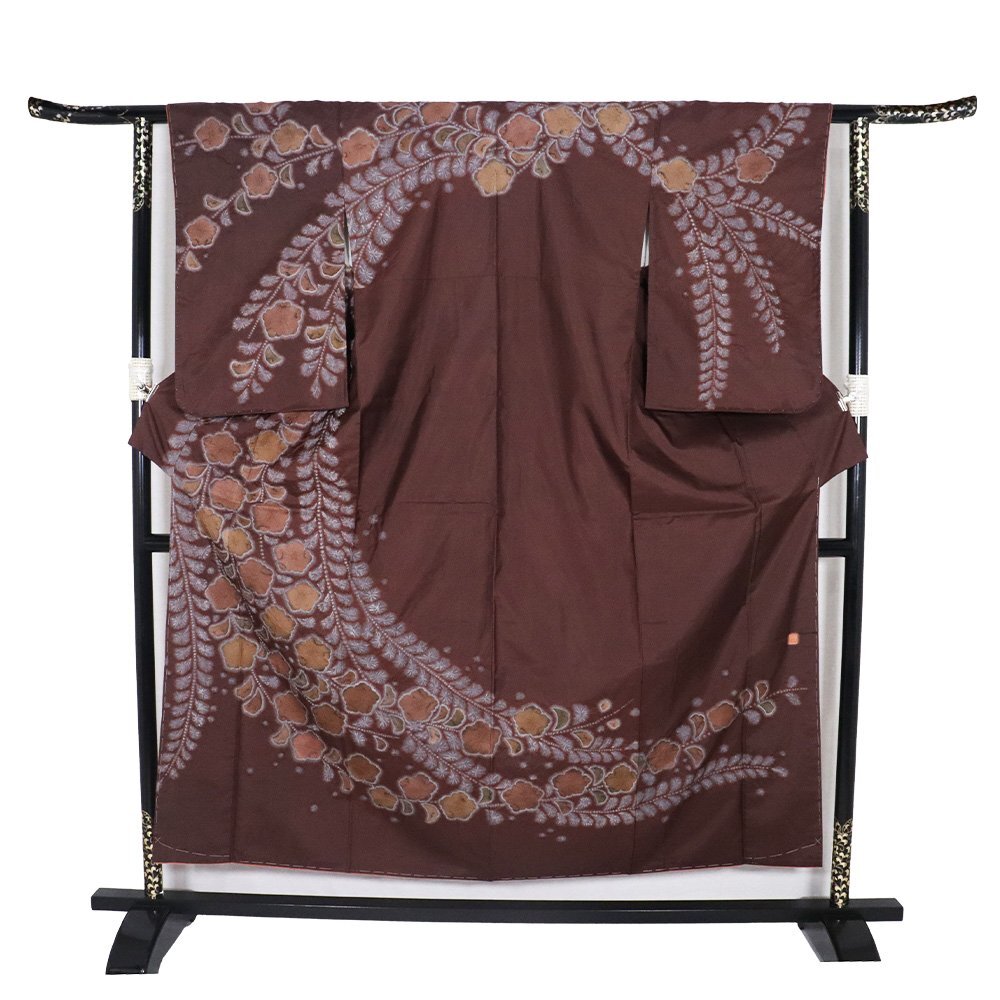 | 染大島紬 辻が花訪問着 袷 小豆色(赤墨色)地 絞り辻が花 161 広襟 作家落款入り 未使用品 仕付け付き | |