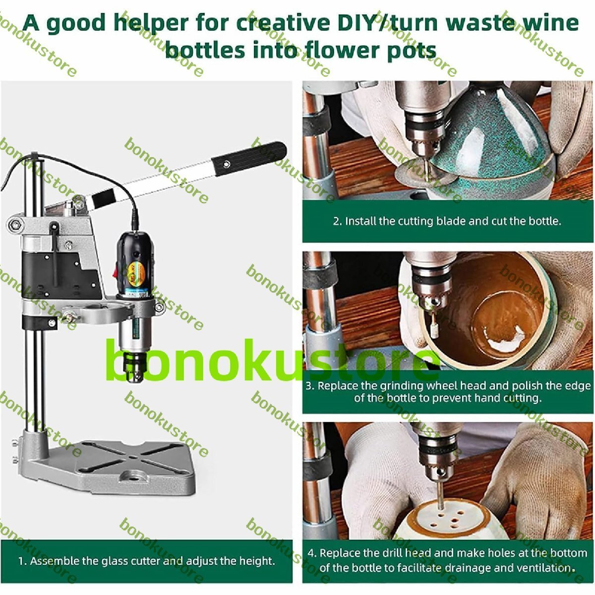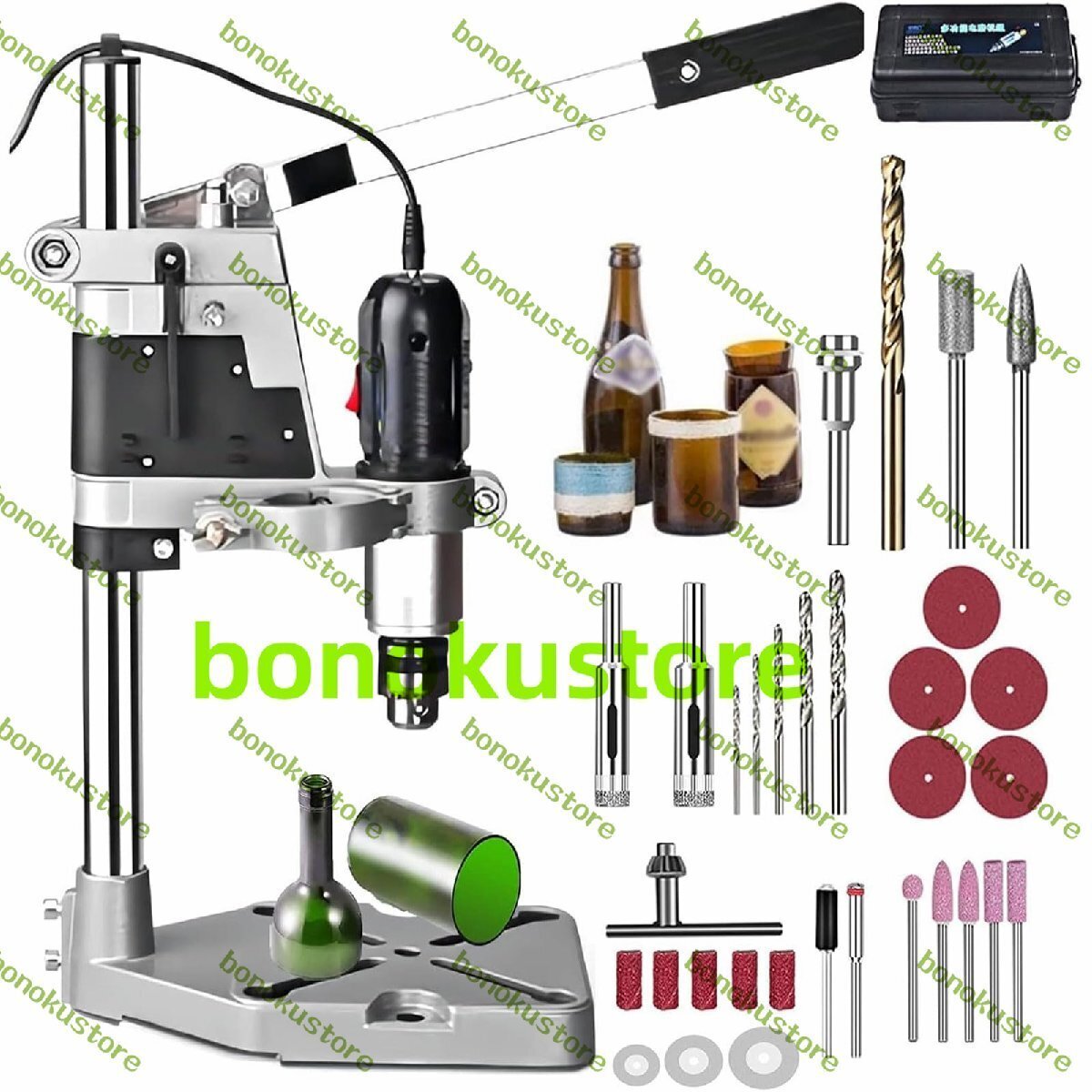 ポータブルガラスボトル切断機、72W電動セラミックパンチカッター、ドリルスタンド付き、5-8000r/minガラス切断ツール、セラミック、ガラス、ワインボトル用