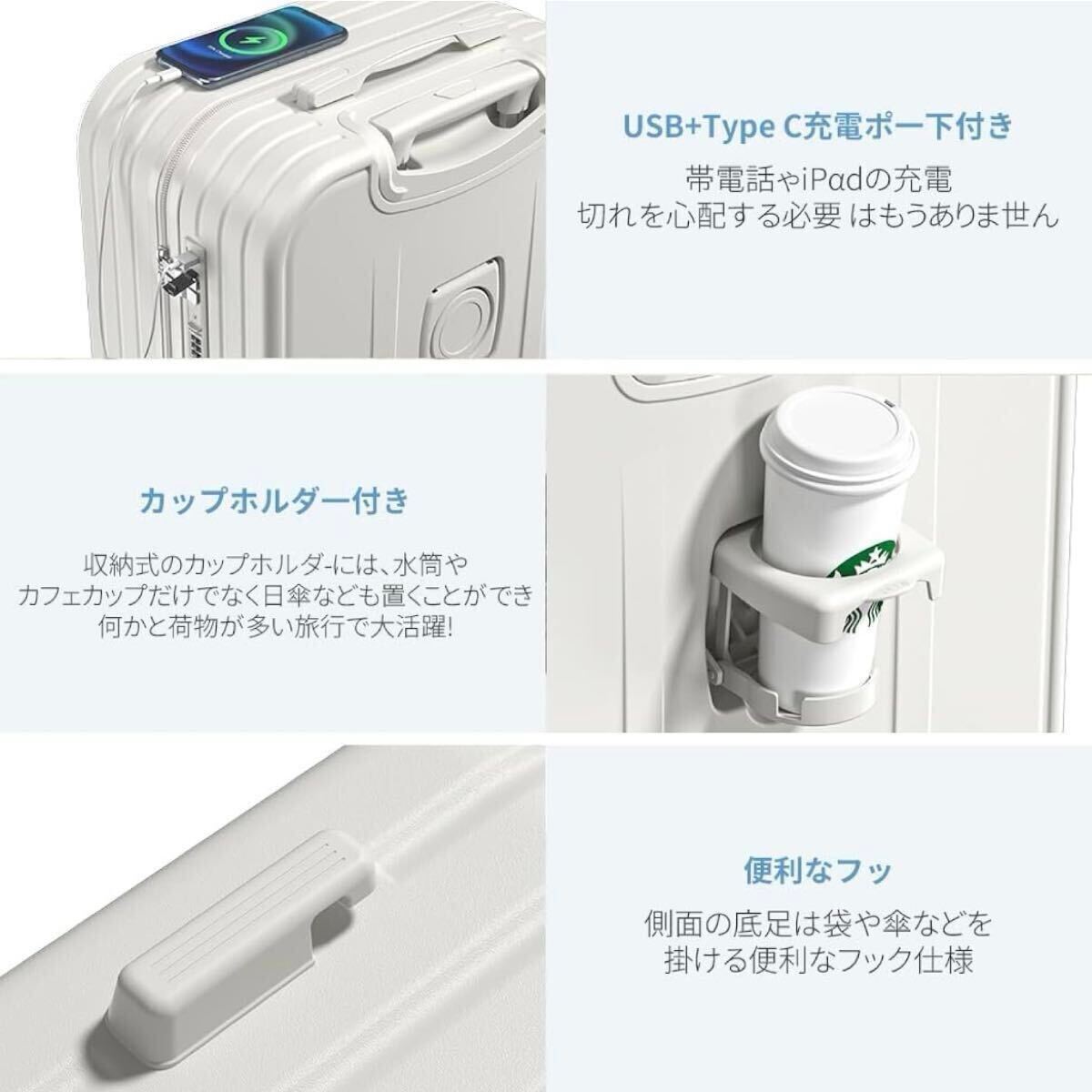 USB充電ポートが付いており、いつでもどこでも充電できます。さらに、便利なカップホルダーが付いており、水筒、コーヒーカップ、その他の飲料容器を置くのに便利です。多機能のデザインと使いやすさが魅力です。