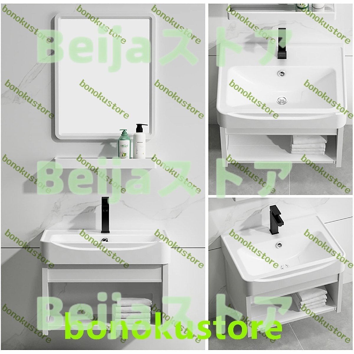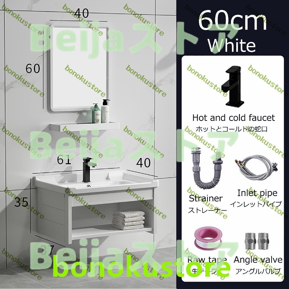 洗面台 洗面ボール 陶器製 洗面シンク 洗面化粧台 キャビネット シンク コンボ 小さなスペース用 バスルーム シンク キャビネット バスルーム シンク 洗面台 鏡付き 壁掛け バスルーム 洗面化粧台 シンク セット フローティング化粧台 バスルーム アンダーマウントセラミックシンク (色 : White Size : 60x40x35cm)