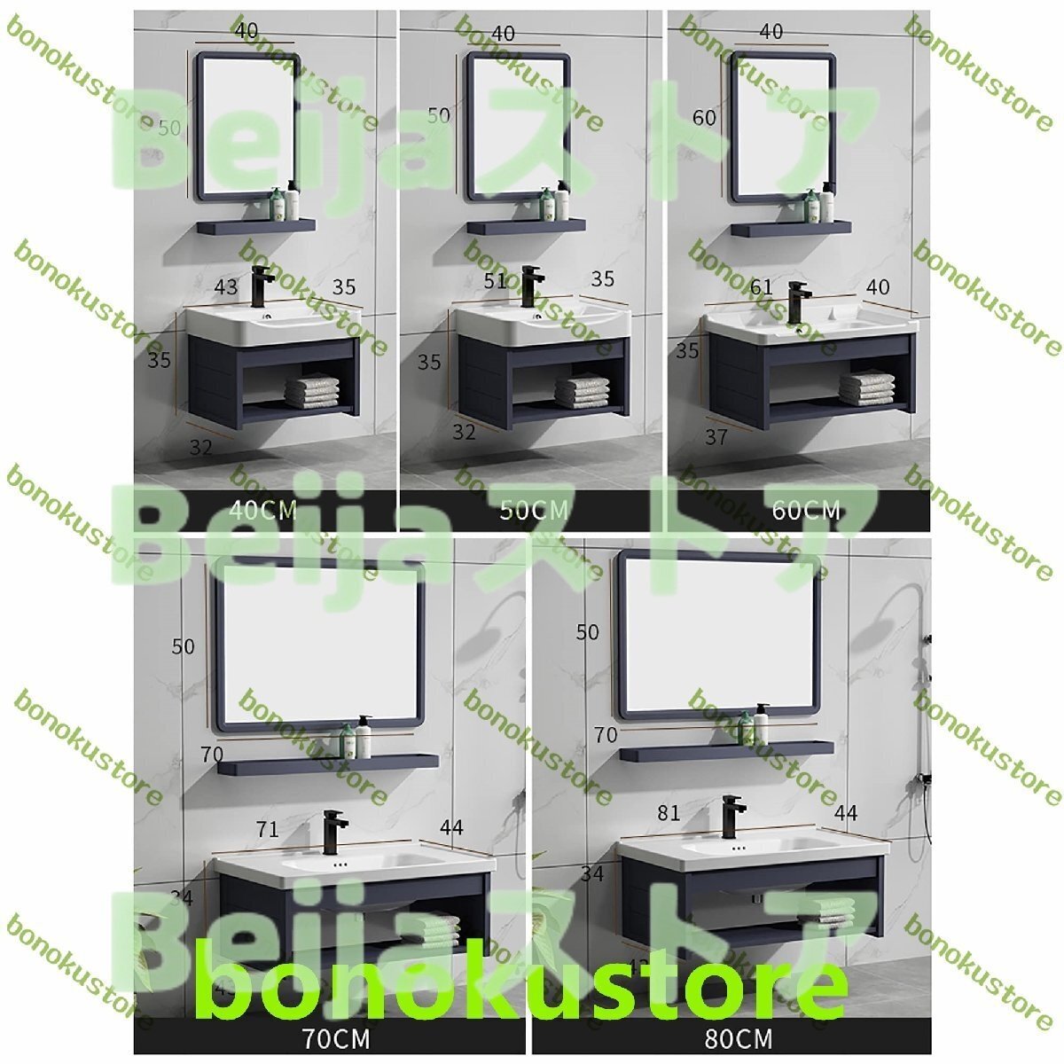 シンク付き洗面化粧台 モダンなバスルーム シンク化粧台キャビネット コンボ セット セラミック容器シンク化粧台キャビネット アンダーマウント セラミック シンク トップ、小さなバスルーム化粧台このシンプルでモダンなデザインは、現代人の美的ニーズを満たすだけでなく、それぞれの使用を簡単かつ快適に楽しむことができます。モダンなデザイン スタイルは、ほとんどのバスルームの装飾スタイルにマッチします。 あらゆるバスルーム、ハーフバス、ゲストルーム、小さなバスルーム、トイレなどに適しています。スペース アルミニウムは、家具の装飾に広く使用されています。 錆びず、色あせせず、環境保護と耐久性があり、濡れたバスルームや露出したバルコニー環境に適しています。高温で統合されたセラミック製の洗面器、釉薬は滑らかで繊細で、黄ばみがなく、清潔で行き止まりがありません仕様名前:バスルームキャビネット色: 木の色、白素材: 航空宇宙グレードの宇宙用アルミニウムシンクのサイズ: 40x35x35cm、50x35x35cm、60x40x35cm、70x44x34cm、80x44x34cm取り付け簡単: 組み立て説明書付きで簡単に組み立てられます。?ヒント1.サイズの異なるバスルームキャビネットの付属品は異なります。購入する前に、付属品の図をよく確認してください。2.商品写真の表示には装飾品は含まれておりません。3.ご購入前に色とサイズをご確認ください。4.手動測定のため、1?2cmの誤差がある場合があります。ご了承ください。
