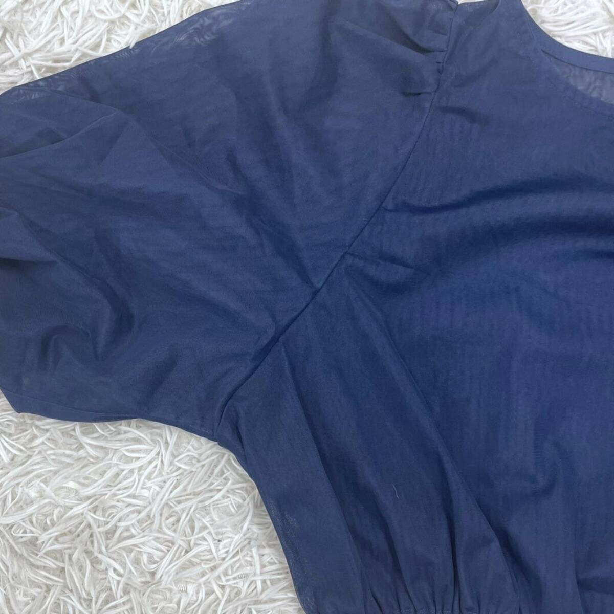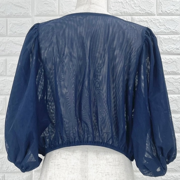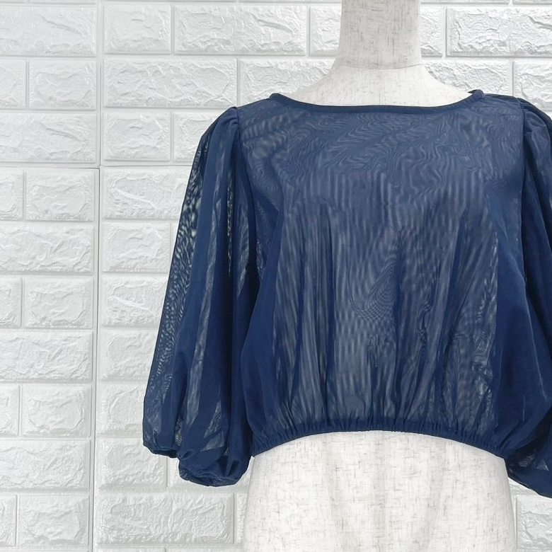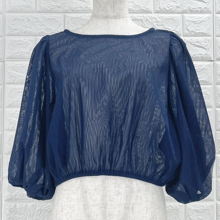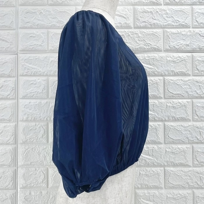 【A3476】mystic ミスティック ブラウス レディース ネイビー バルーン袖 透け感 カジュアル 軽やか フェミニン 春夏 Mサイズ