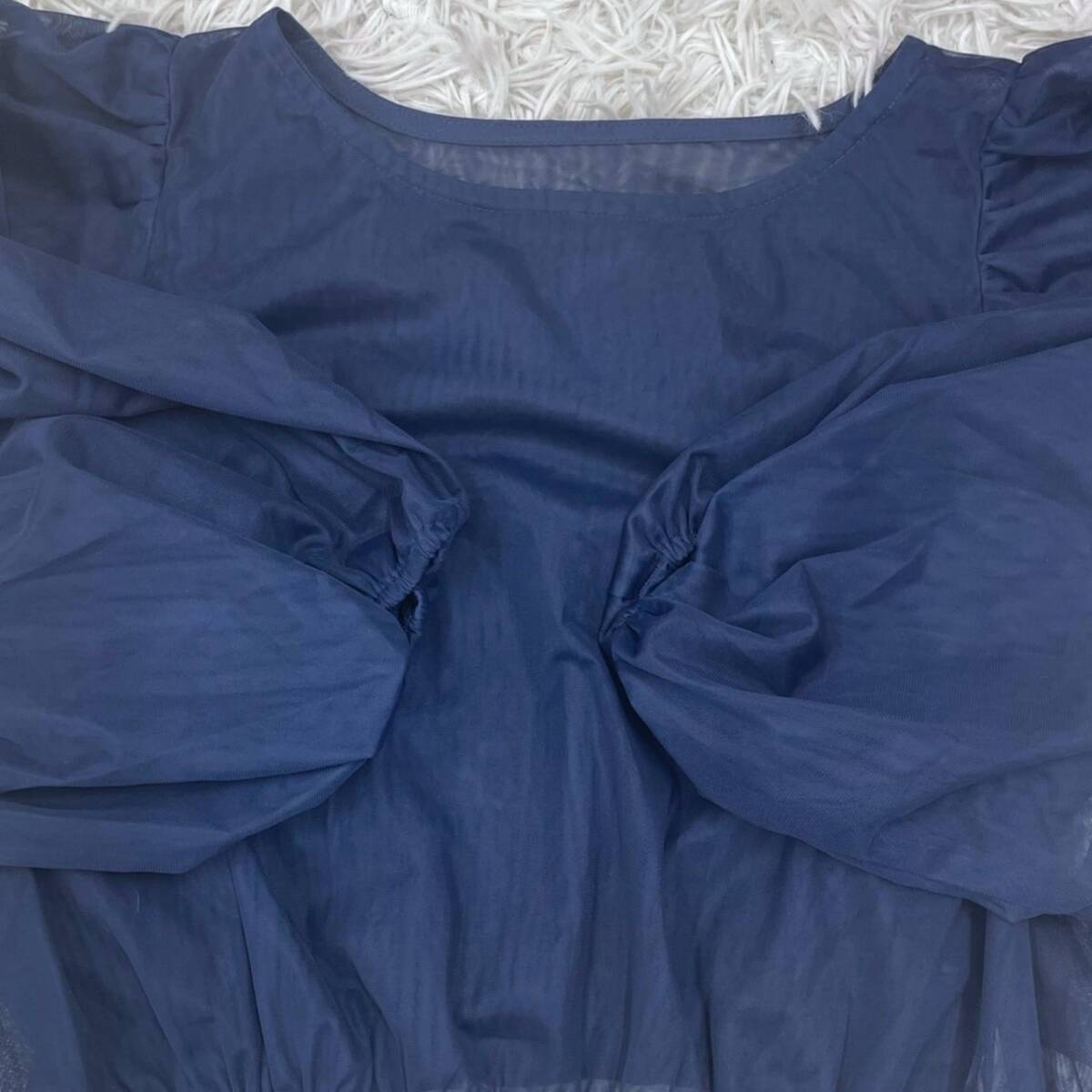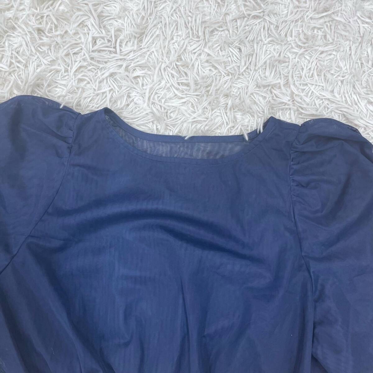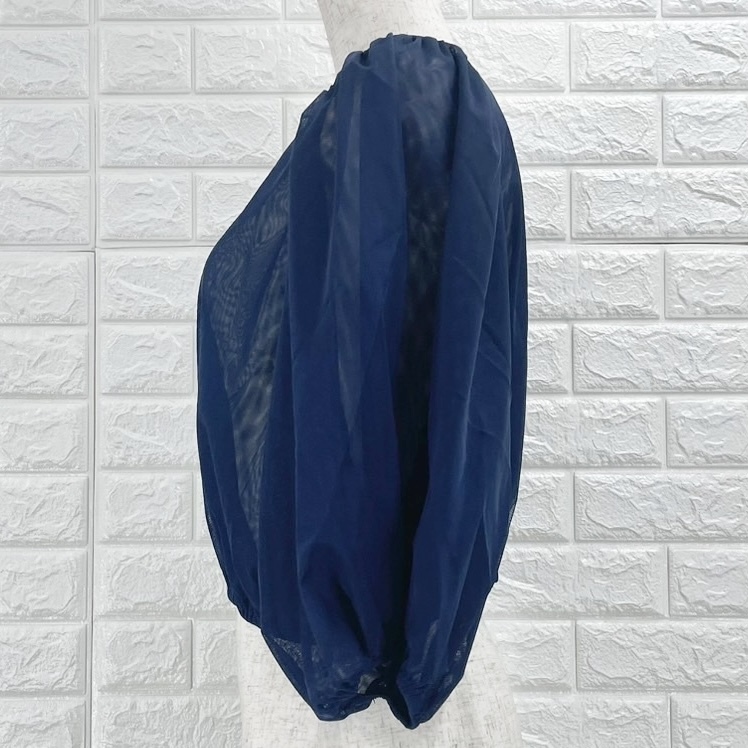 【A3476】mystic ミスティック ブラウス レディース ネイビー バルーン袖 透け感 カジュアル 軽やか フェミニン 春夏 Mサイズ
