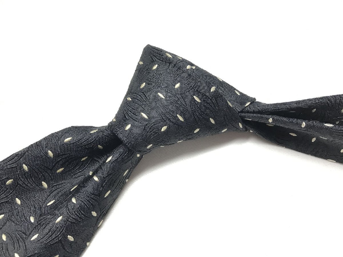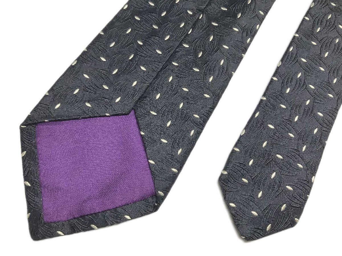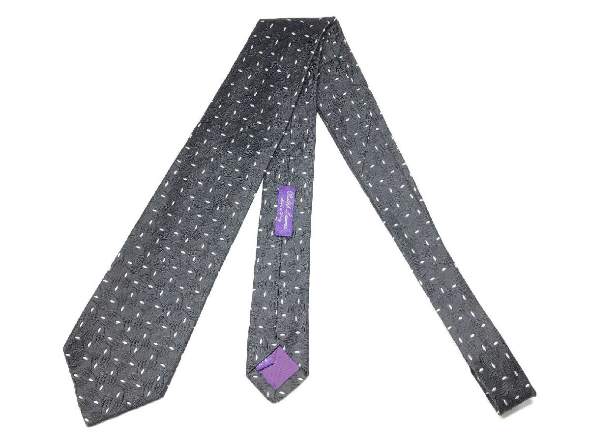 【ラルフローレンパープルレーベル RALPH LAUREN PURPLE LABEL】 小紋柄 織柄 シルク 絹 ネクタイ (メンズ) 黒×白 伊製 ◯27KSM2016