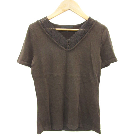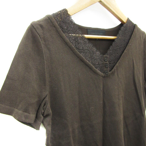 アンタイトル UNTITLED ニット カットソー 半袖 レース 2 ブラウン 茶 /YM16 レディース