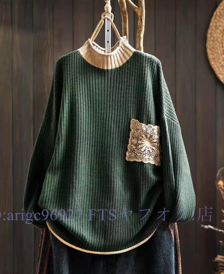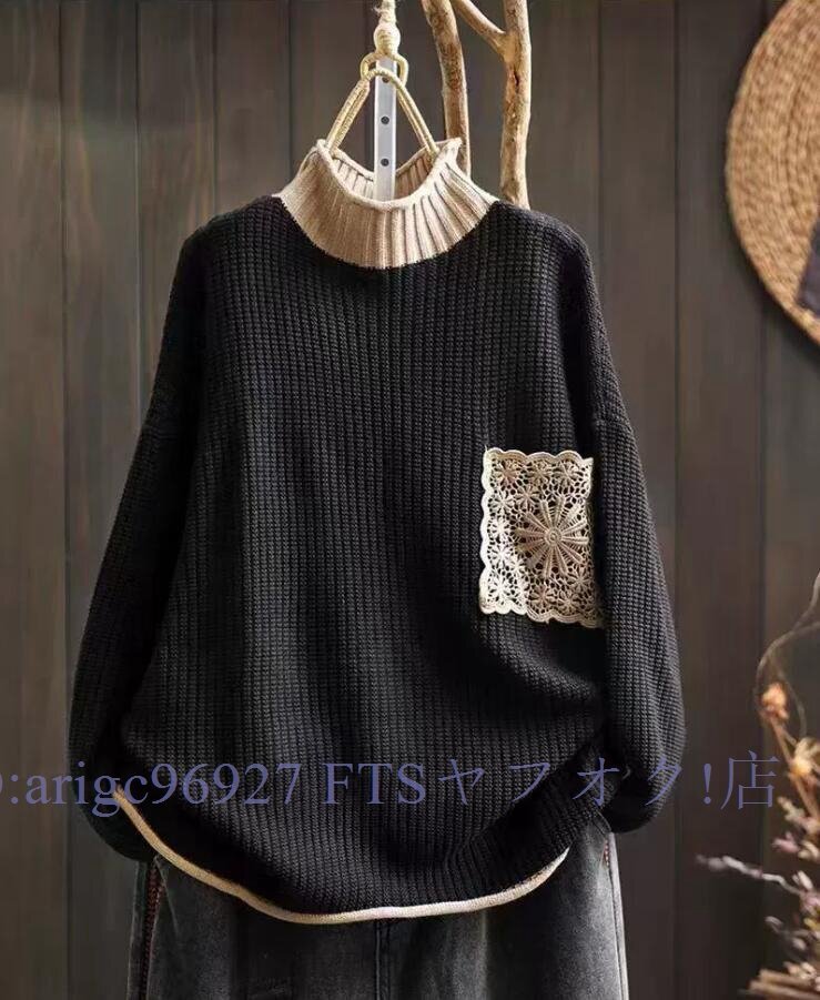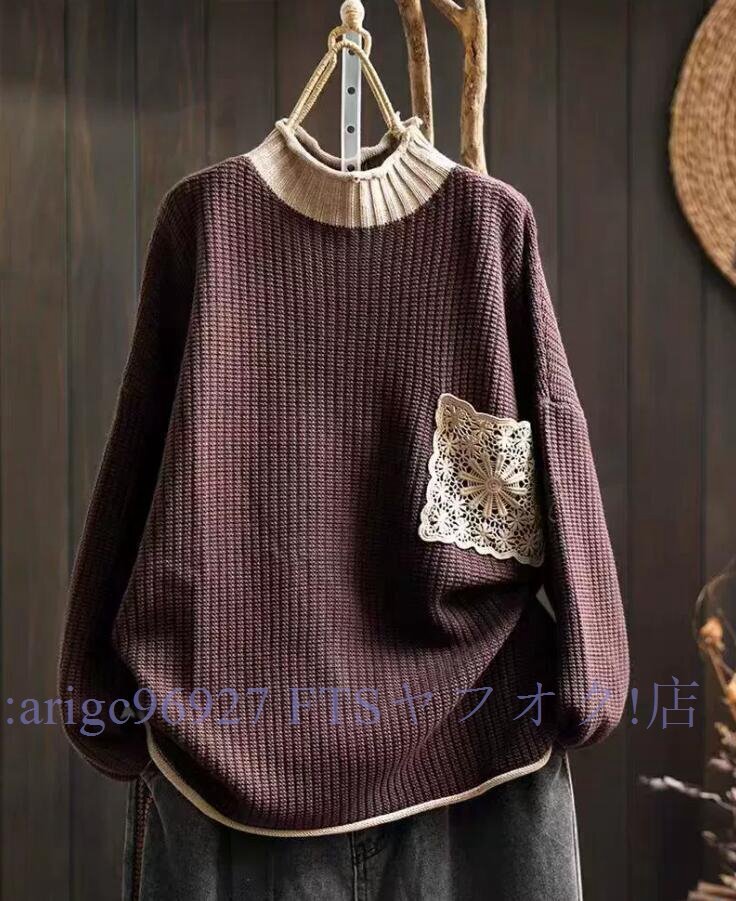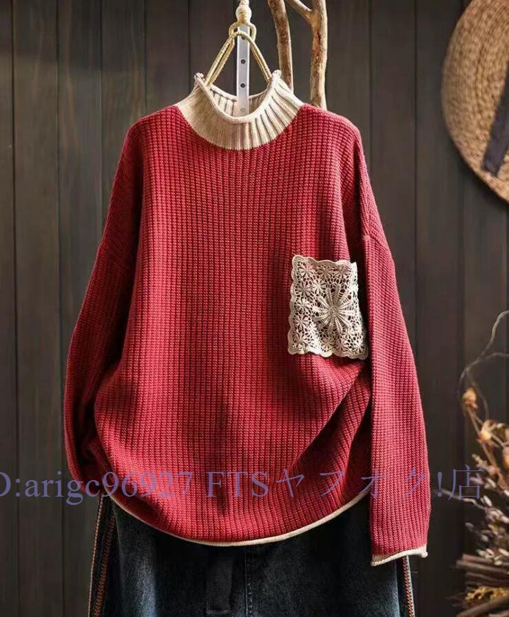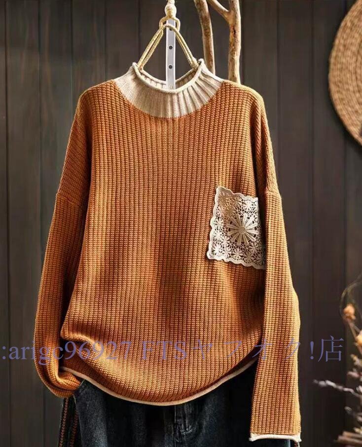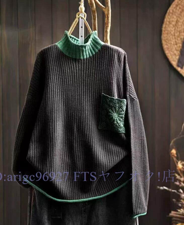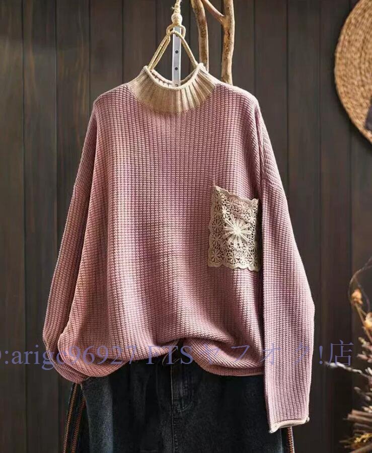 B3036☆新品品 ニット セーター チュニック フリーサイズ 綿100% 通勤着 普段着 ハーフネックお色選択可