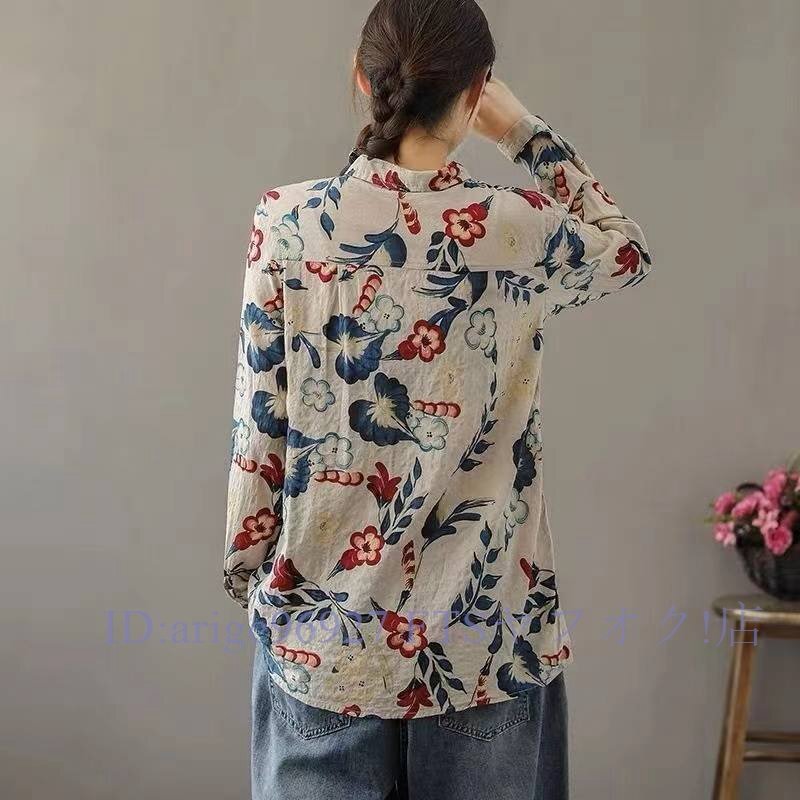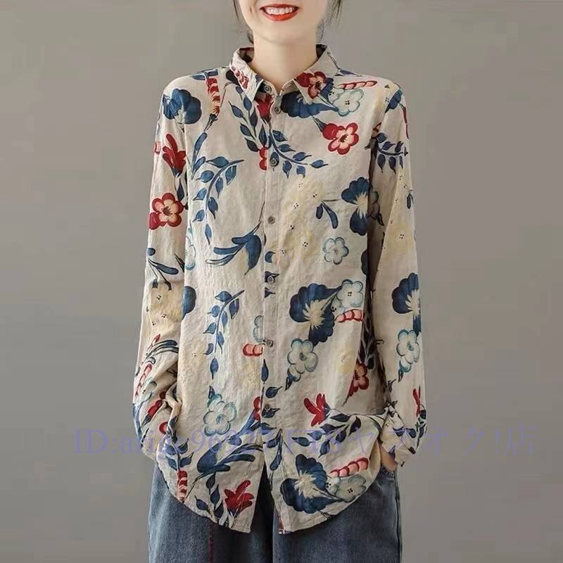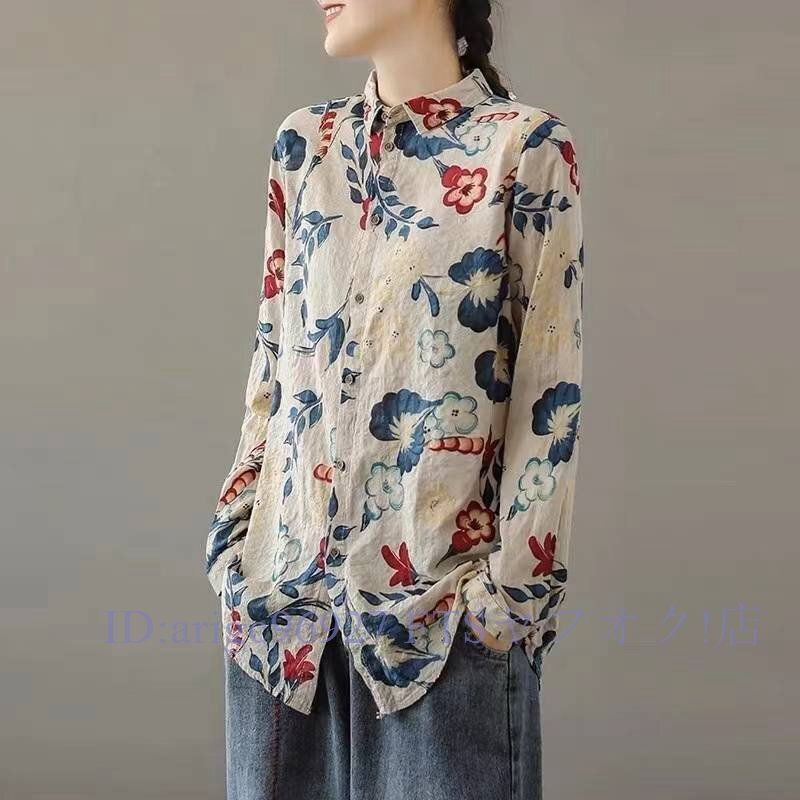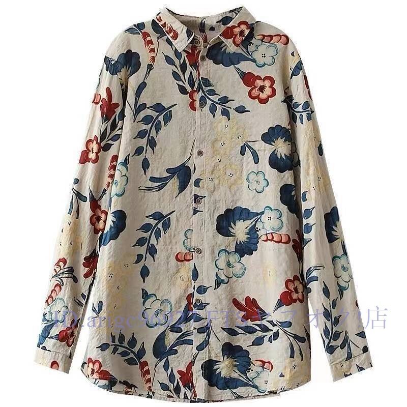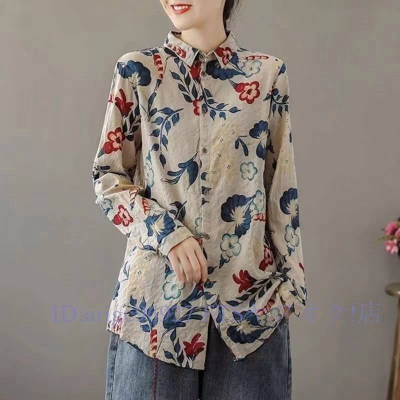 B3029ブラウス長袖シャツ レディース トップス 春 夏秋前ボタン総柄シャツ プリント長袖ブラウス 総柄トップス オフィス通勤 サイズ選択可