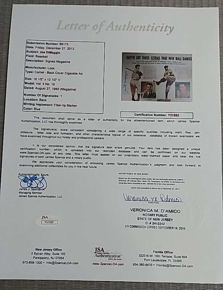 JSA社鑑定済み ジョー・ディマジオ Joseph Paul DiMaggio 直筆サイン入り雑誌