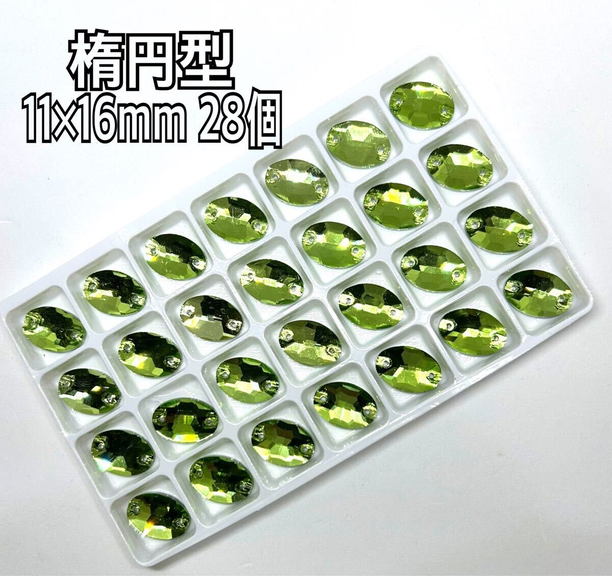 11×16mm 28個 楕円型 ガラスビジュー 衣装装飾用 高輝度 レオタード 新体操 グリーン