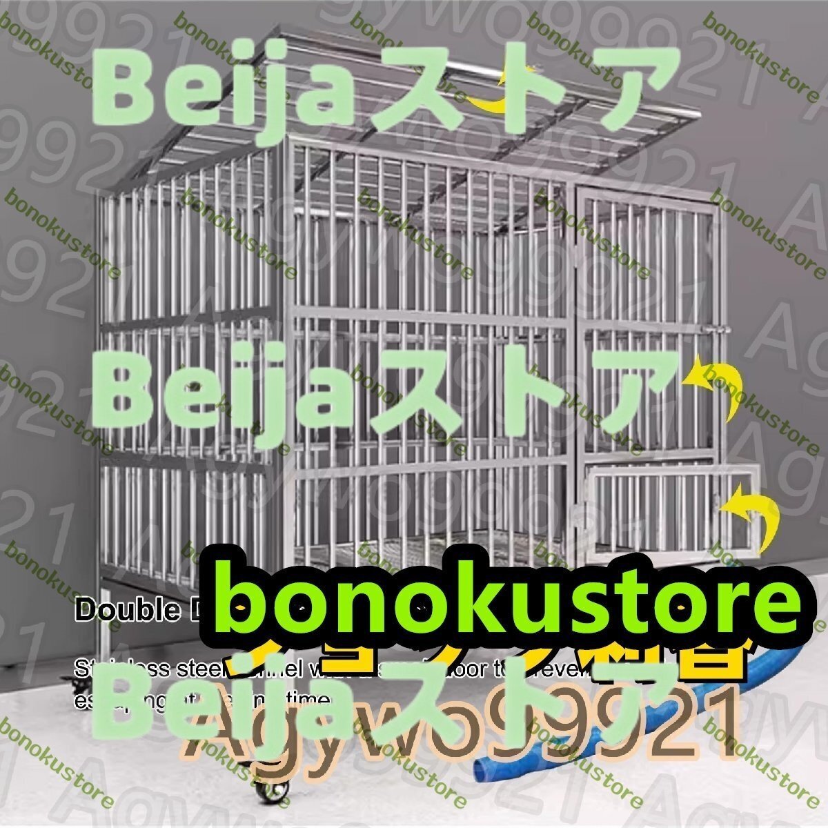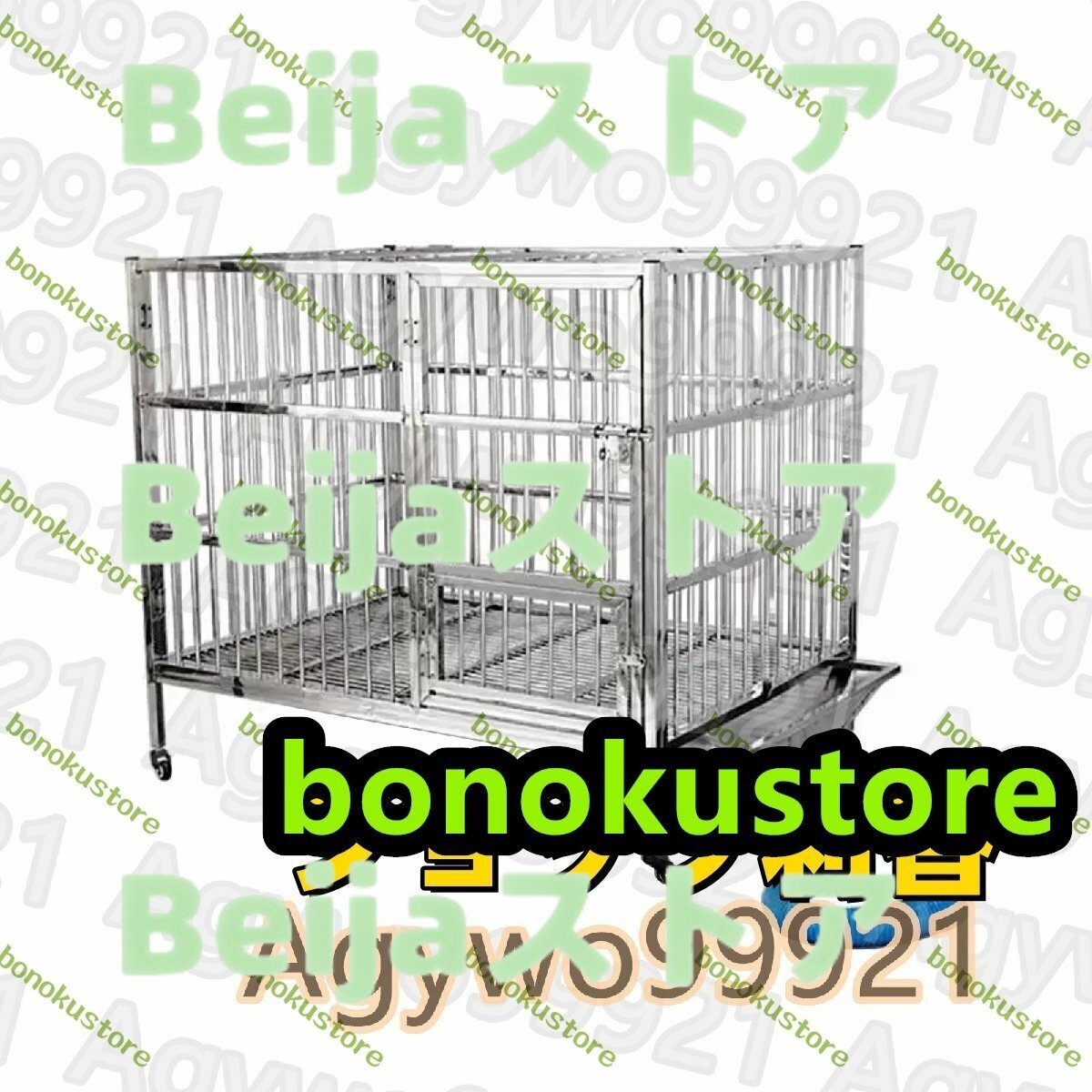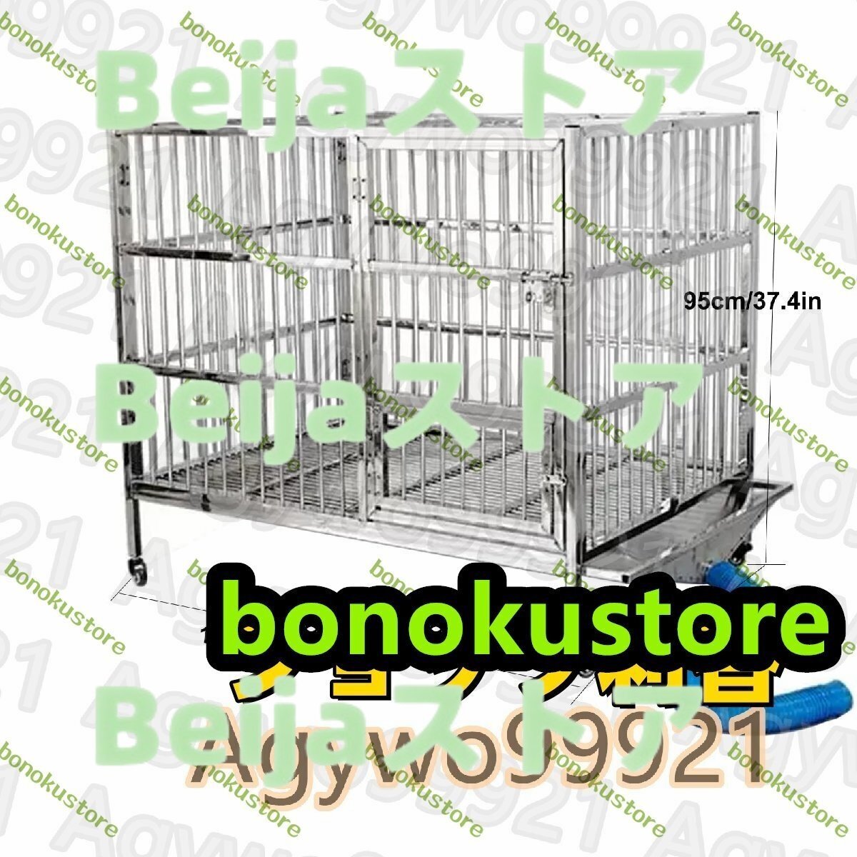 ステンレス製の犬用ケージ、キャスター付き ペットケージ 室内犬 ゲージ 犬小屋・ケージ 犬舎 ドッグハウス 犬用トイレ付き(125X75X95cm)