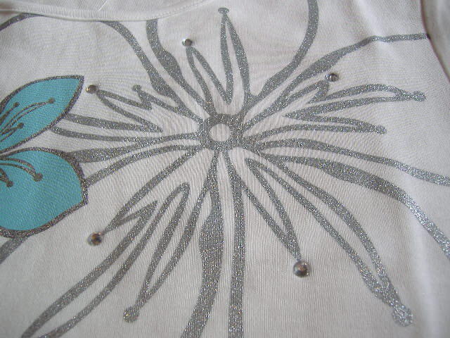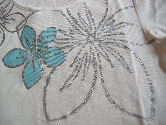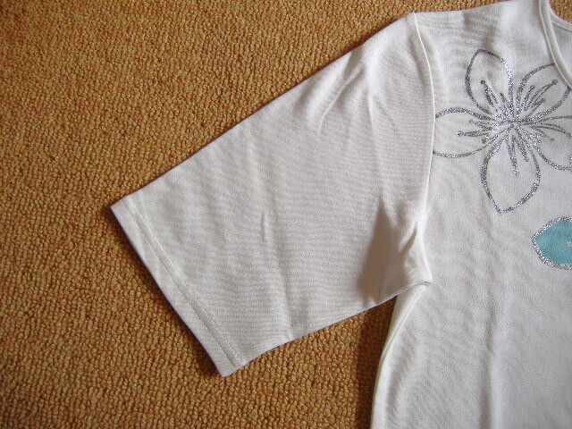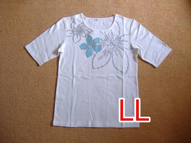 【月初セール!】5分袖Tシャツ★ラメプリント★プルメリア★白★LLサイズ