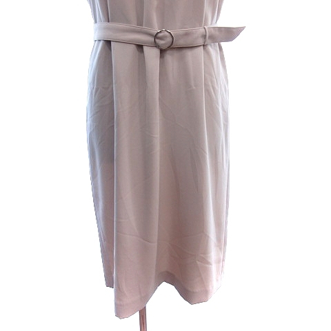 ナチュラルビューティーベーシック NATURAL BEAUTY BASIC ワンピース ひざ丈 Vネック フレンチスリーブ ウエストマーク L ベージュ