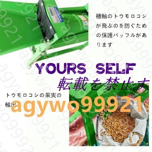 • 4. 注意事項: 乾燥したトウモロコシまたはトウモロコシの殻のみを処理できます。 トウモロコシが湿っていると、機械がブロックして詰まる可能性があります。