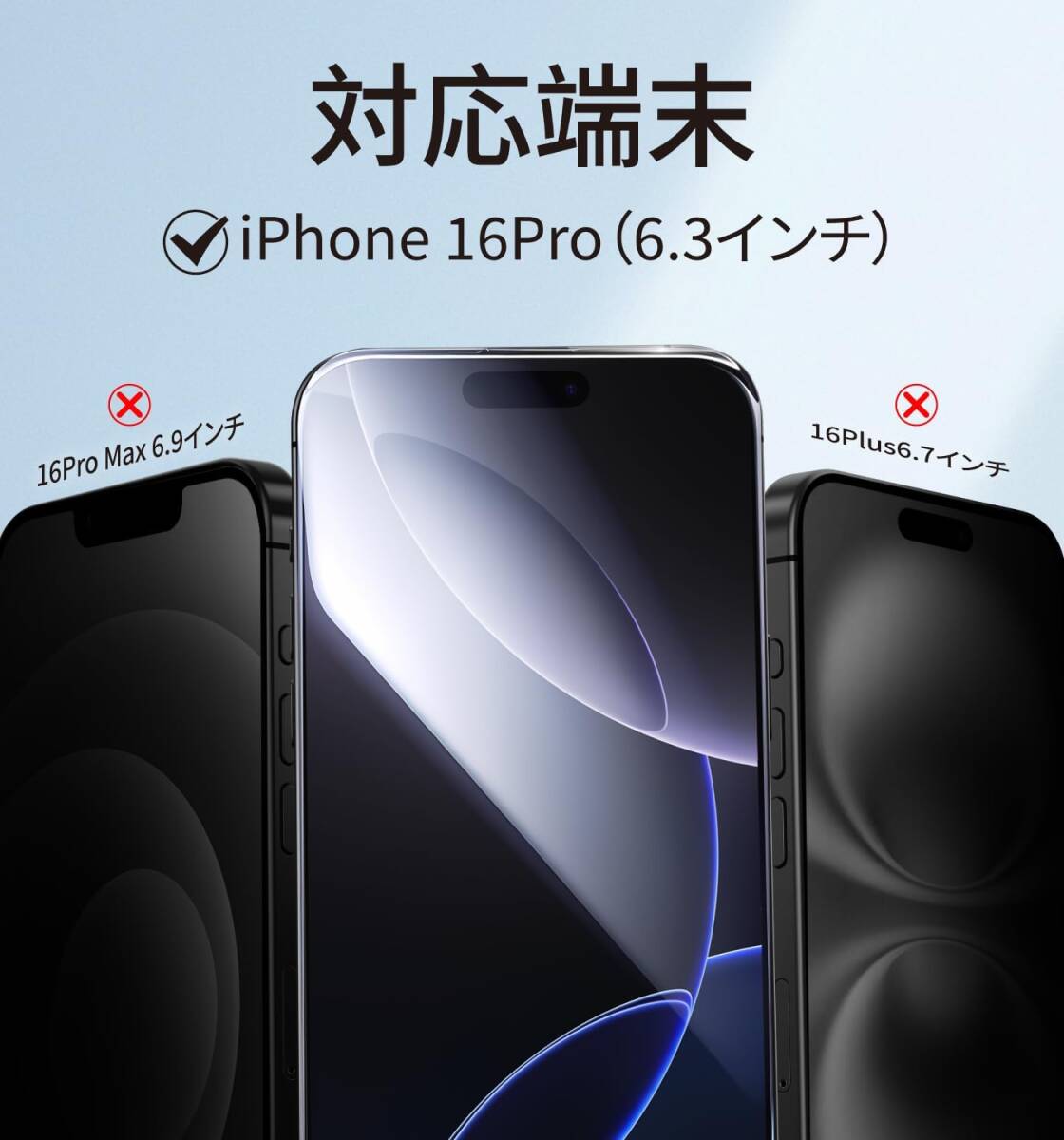iPhone 16 Proに対応するガラスフィルム2枚セットです。