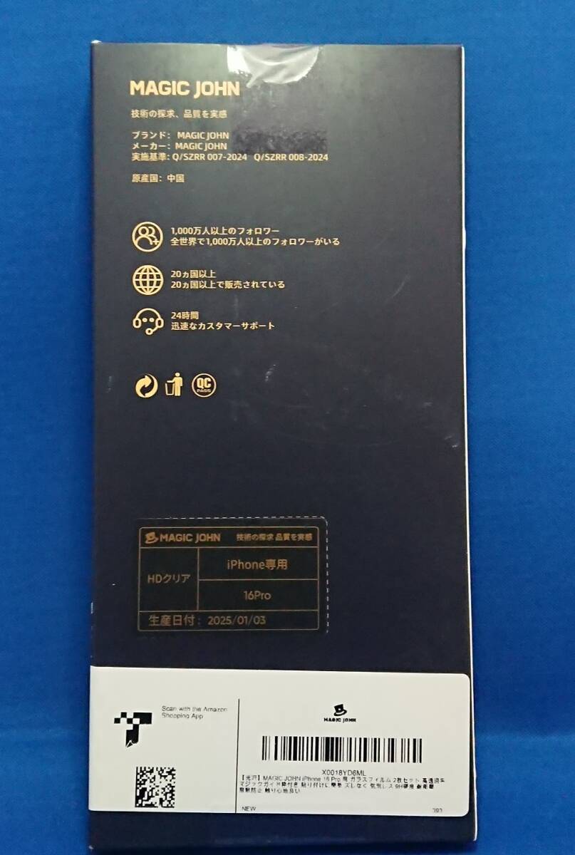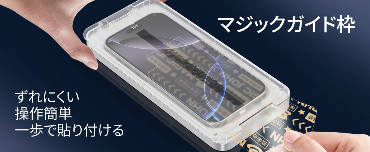 MAGIC JOHN iPhone 16 Pro 用 光沢ガラスフィルム 2枚セット マジックガイド枠付き 硬度9H 高透過率 耐衝撃 飛散防止