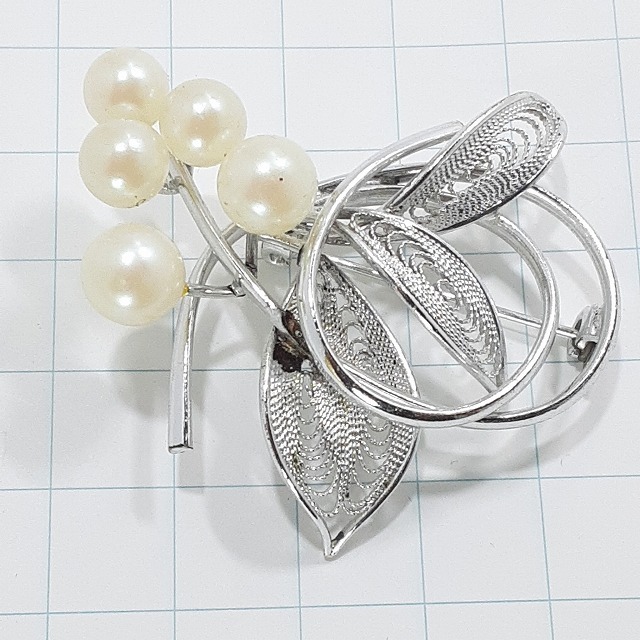 送料無料)ビンテージ☆パール お花モチーフ☆アンティーク ブローチ A28874