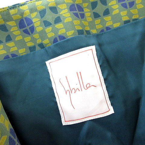 シビラ SYBILLA スカート ひざ丈 シフォン 総柄 フレア カーキ M レディース