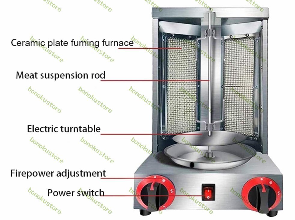 ワッフルメーカー 商業LPGガスロータリーターキーブロイラーグリルマシン垂直ケバブロースター中東ロティサリー機器