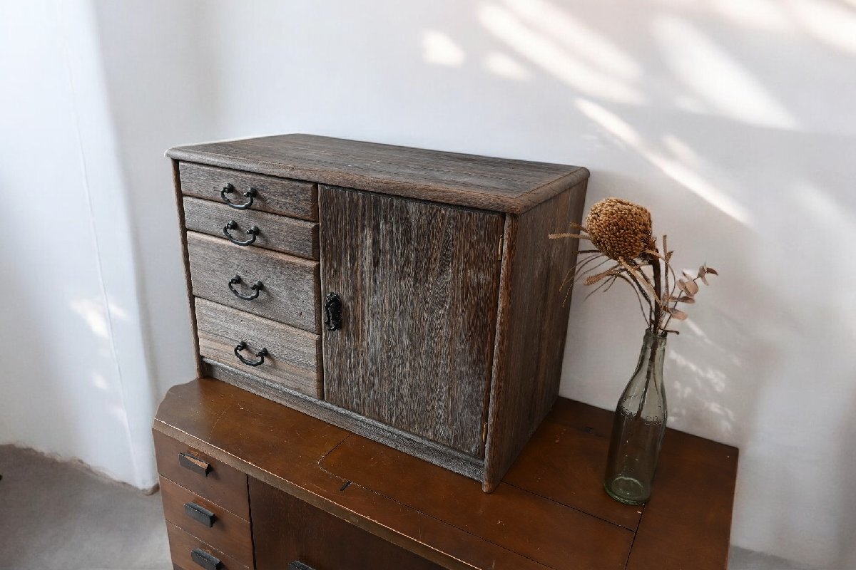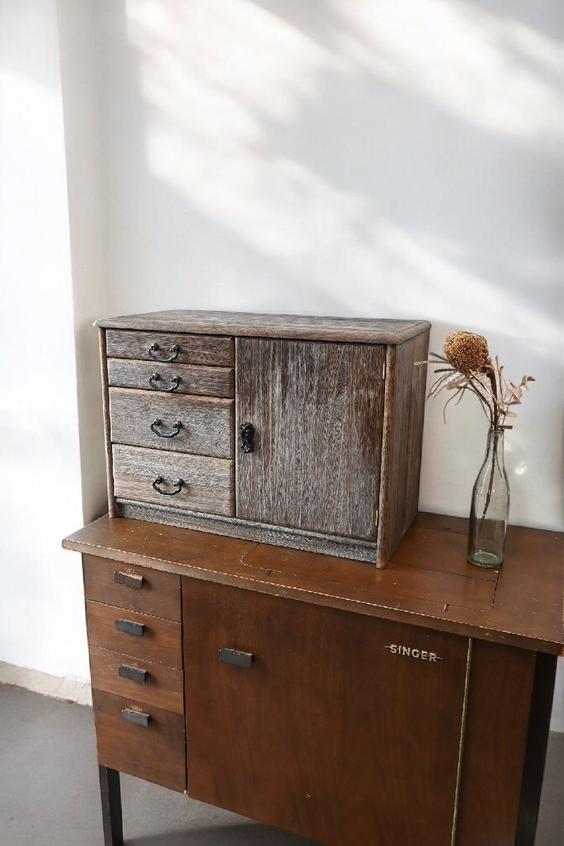 ○可愛い木製の戸棚 扉 収納 引き出し 4段 レトロポップ ガーリー 昭和 ヴィンテージ 古道具のgplus広島 2503i