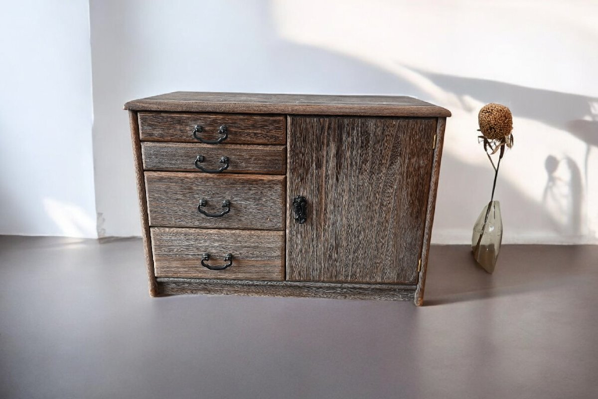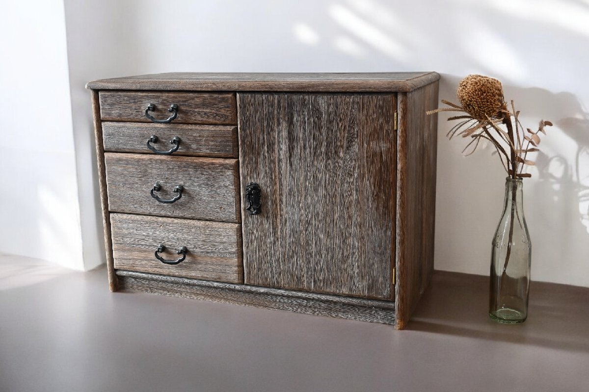 左側に引き出し4段、右側に扉つきの収納スペースがあります